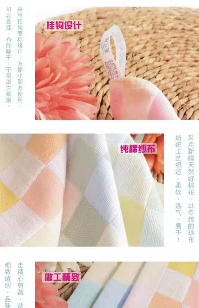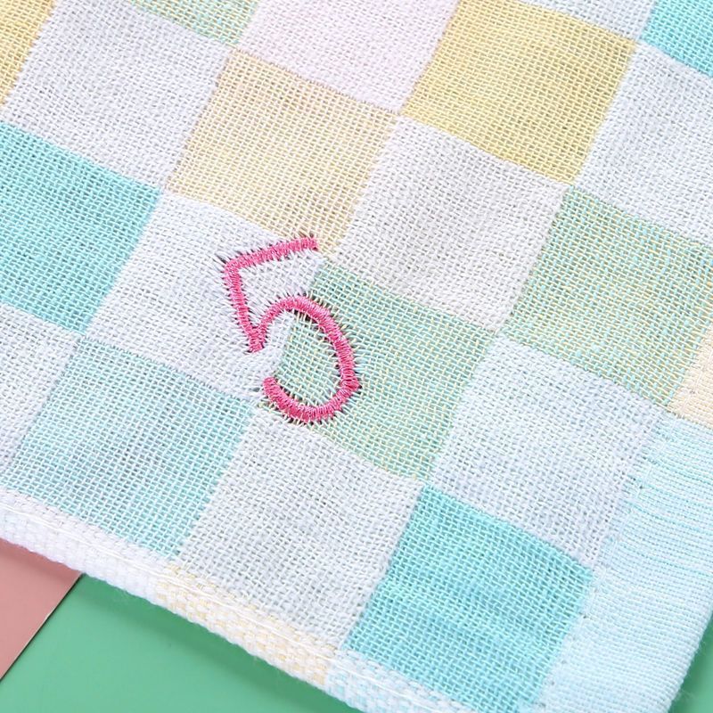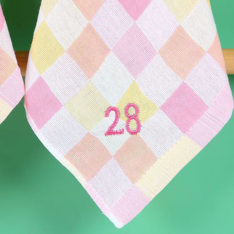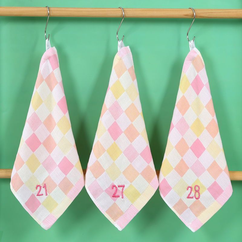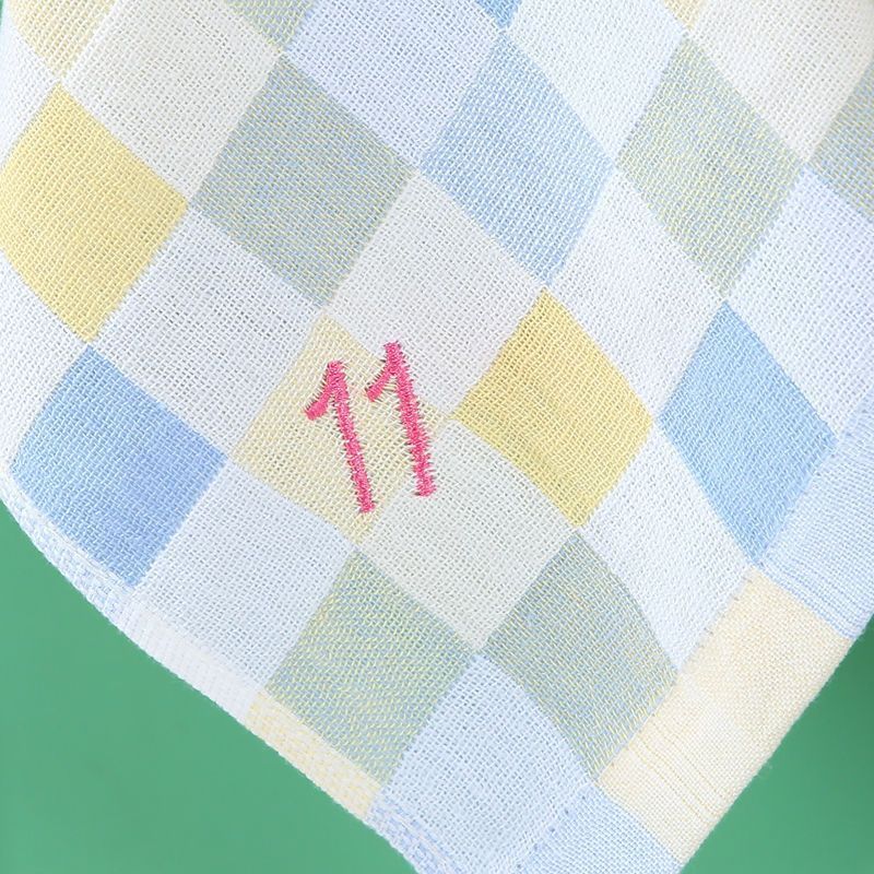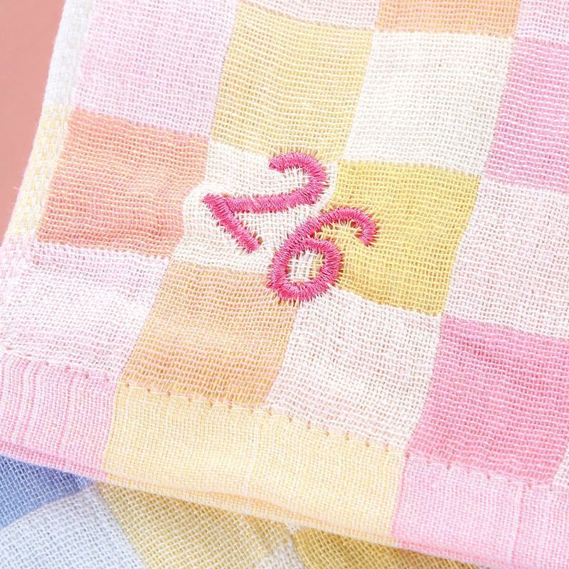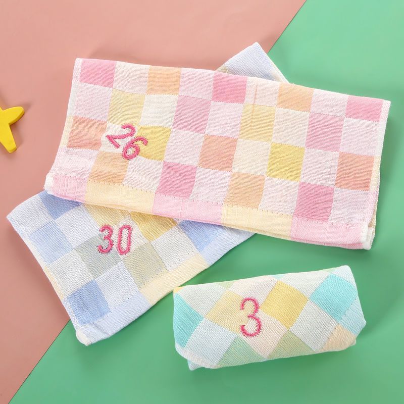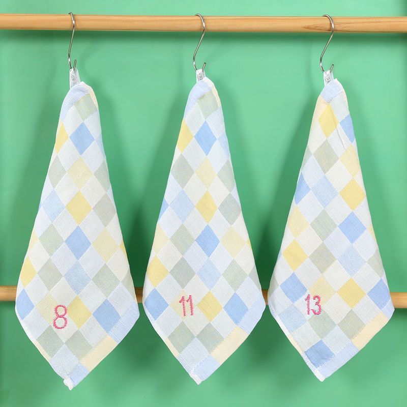 유치원 특수 번호 끈 컬러 그리드 더블 레이어 스퀘어 타월 거즈 타월 순수 코튼 거즈 학교 개학 핫 세일