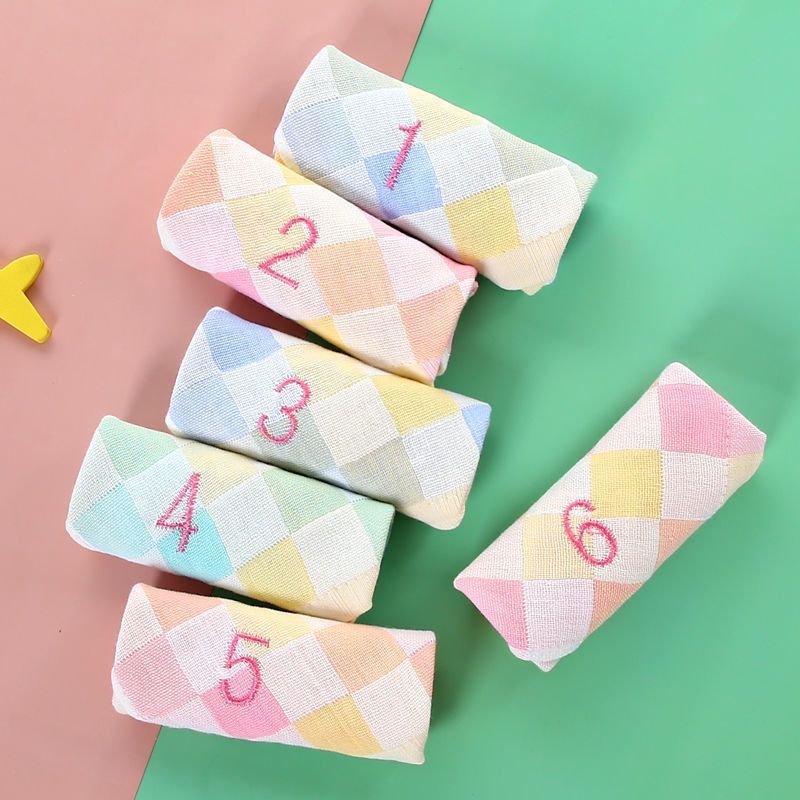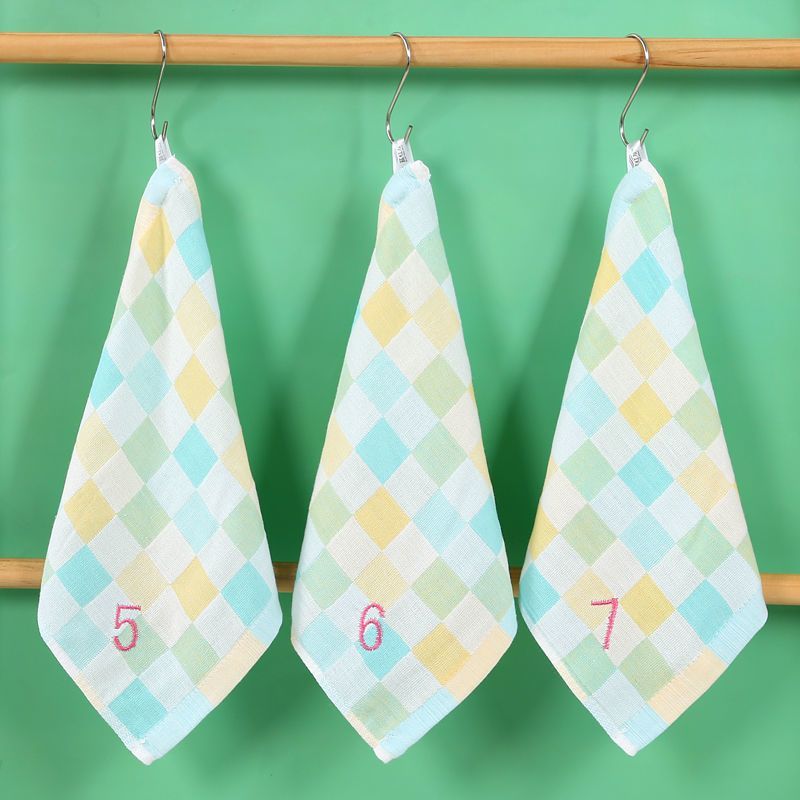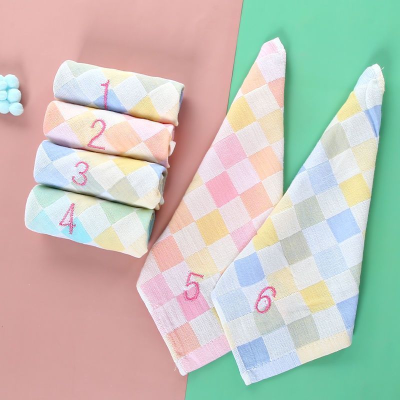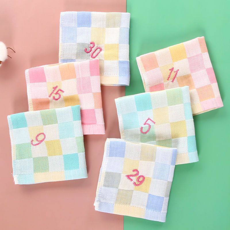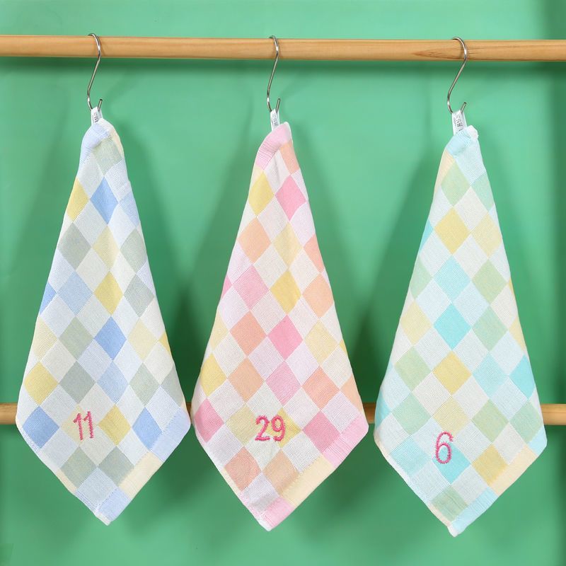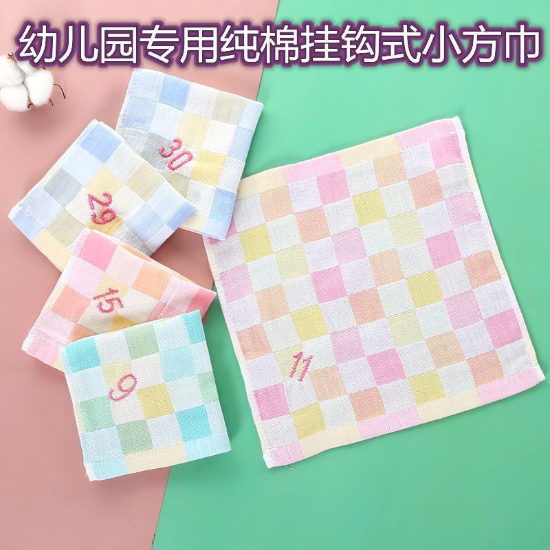 유치원 특수 번호 끈 컬러 그리드 더블 레이어 스퀘어 타월 거즈 타월 순수 코튼 거즈 학교 개학 핫 세일스토어 가기