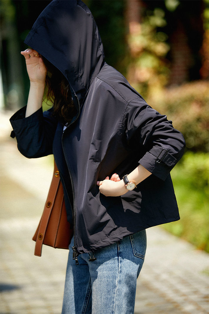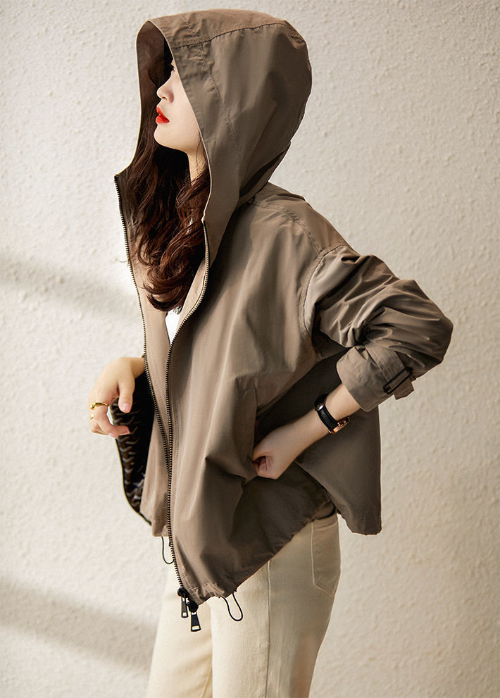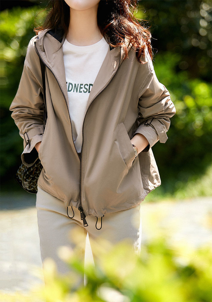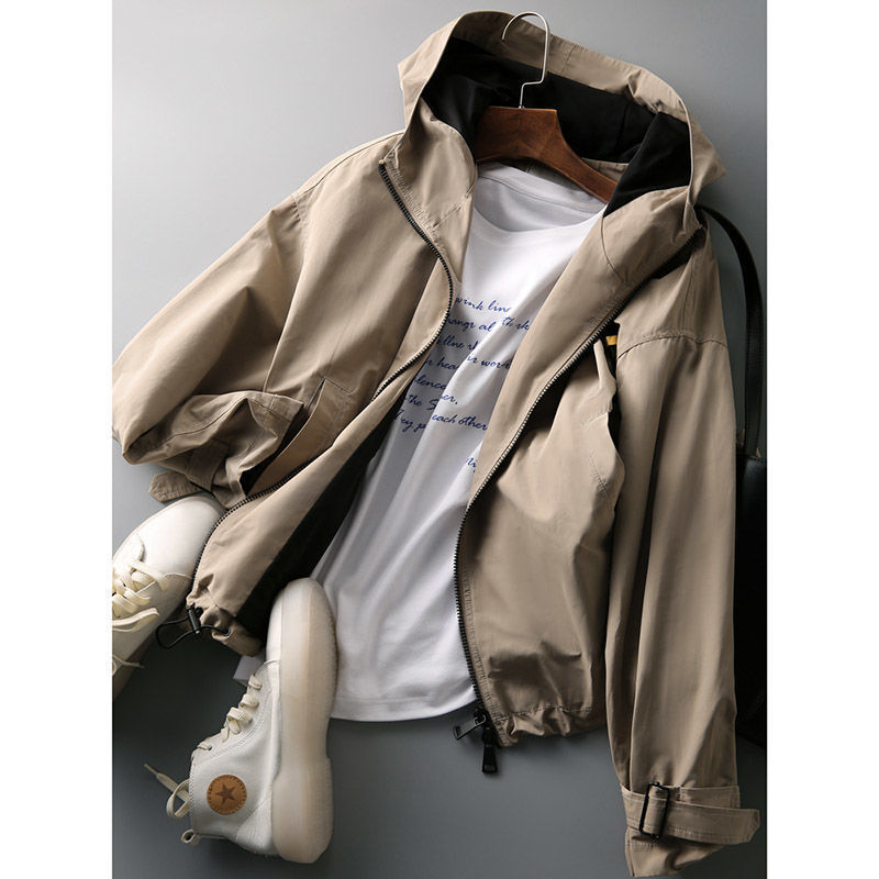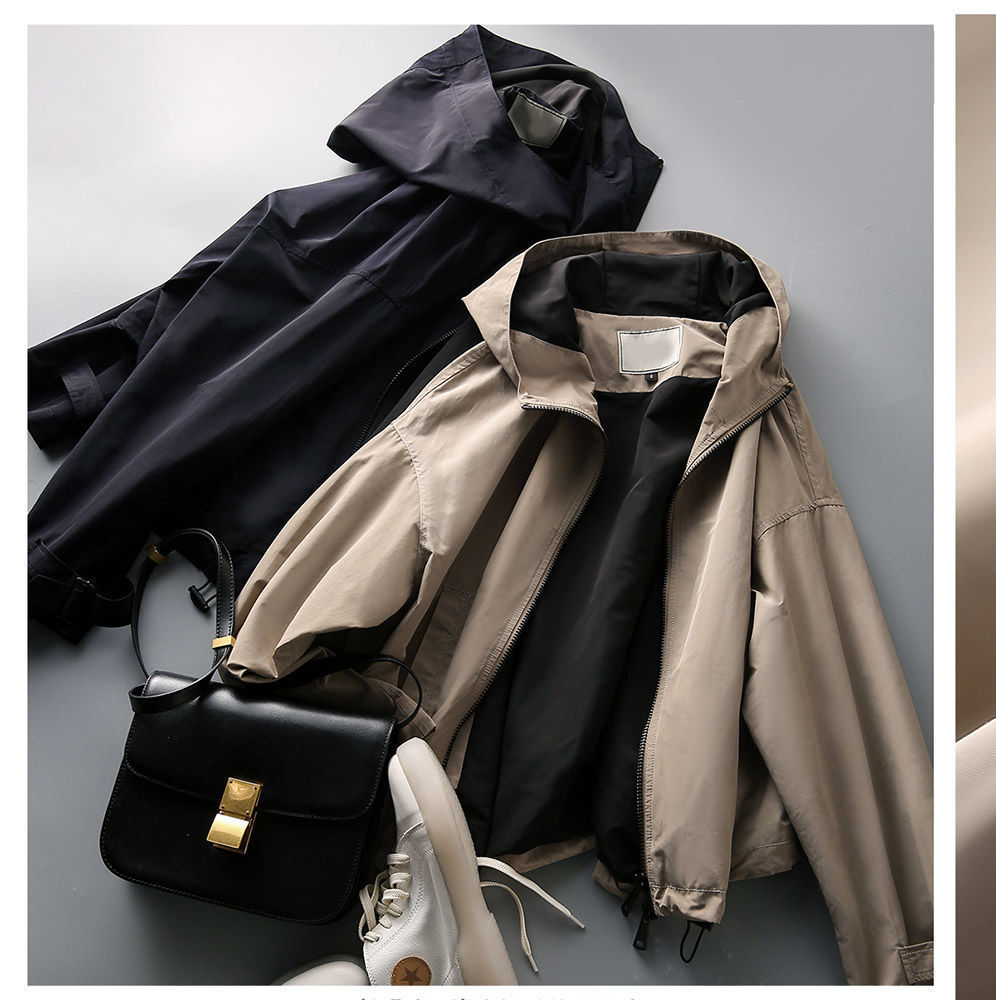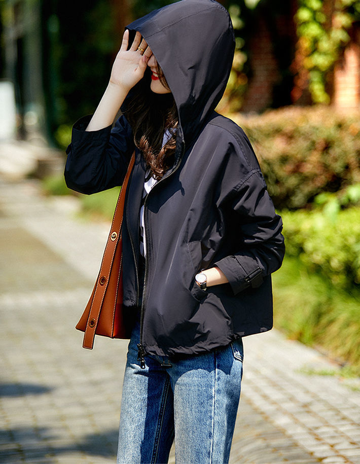 한국 스타일의 세련된 후드 지퍼 윈드브레이커 여성용 2026 가을 신상 루즈핏 숏자켓 트렌디스토어 가기