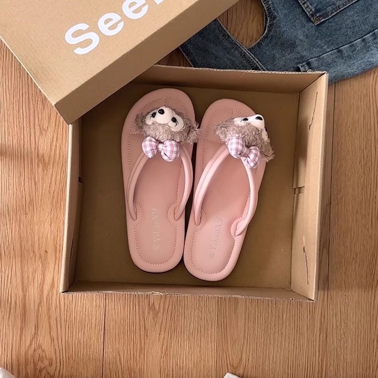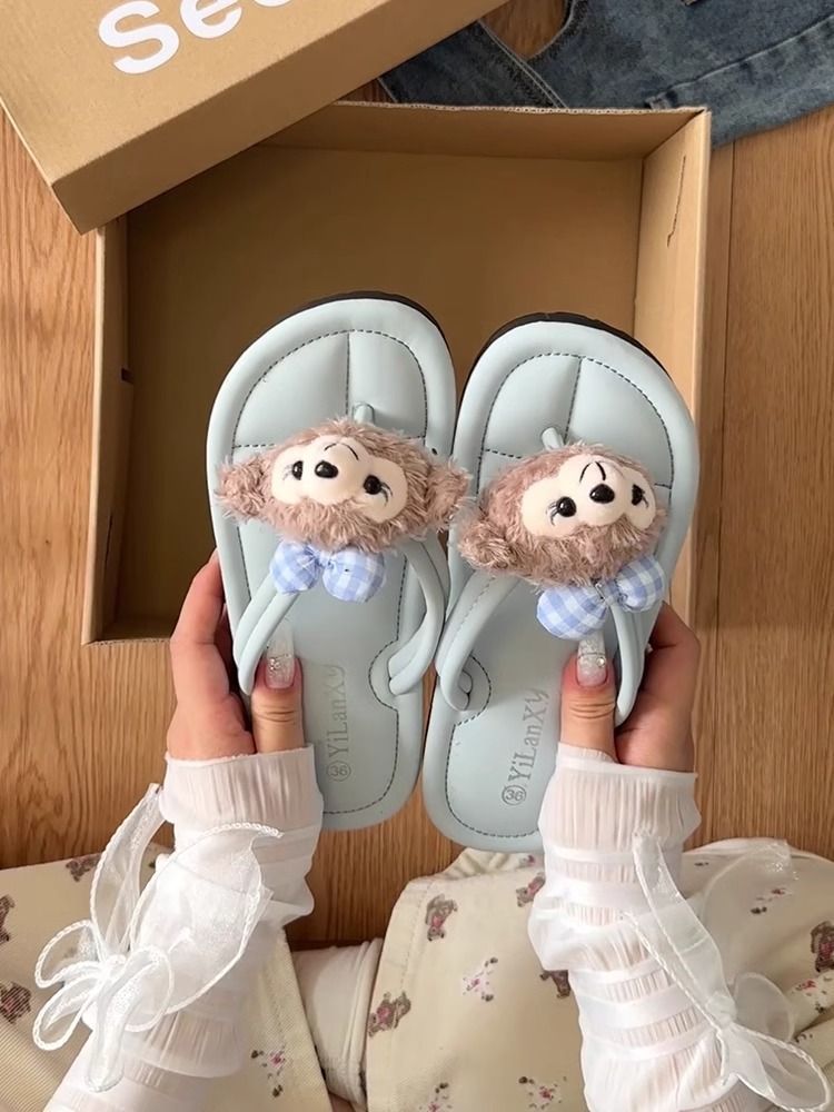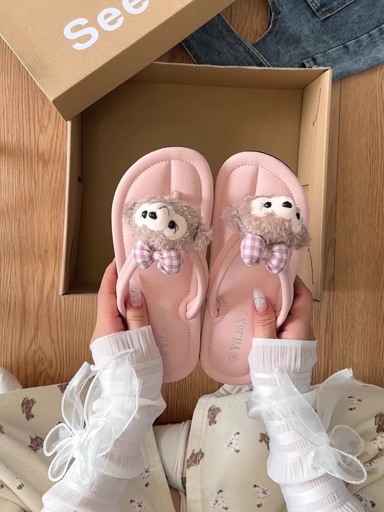여름 요정 만화 귀여운 셜리 로즈 플립 플롭 여성 겉옷 2025 새로운 여름 두꺼운 밑창 플립 플롭스토어 가기