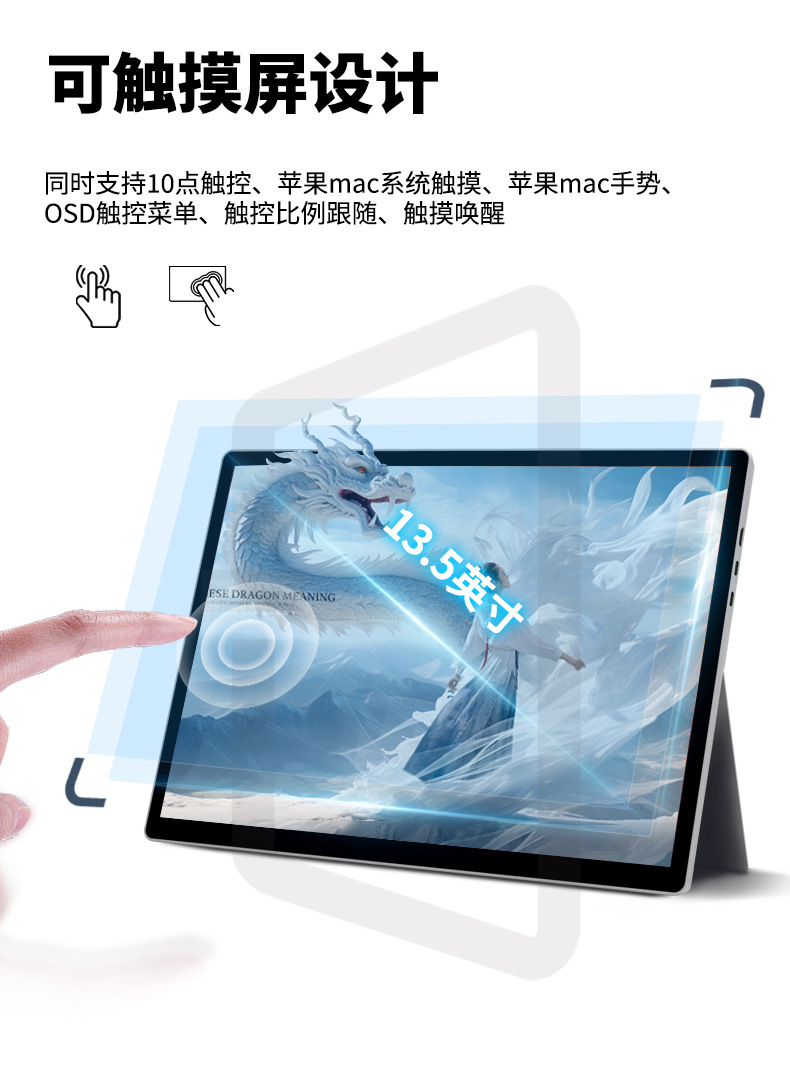 스트리트 라이트 13.5인치 3K 터치 휴대용 모니터 노트북 태블릿 휴대폰 터치 PS5 외부 화면