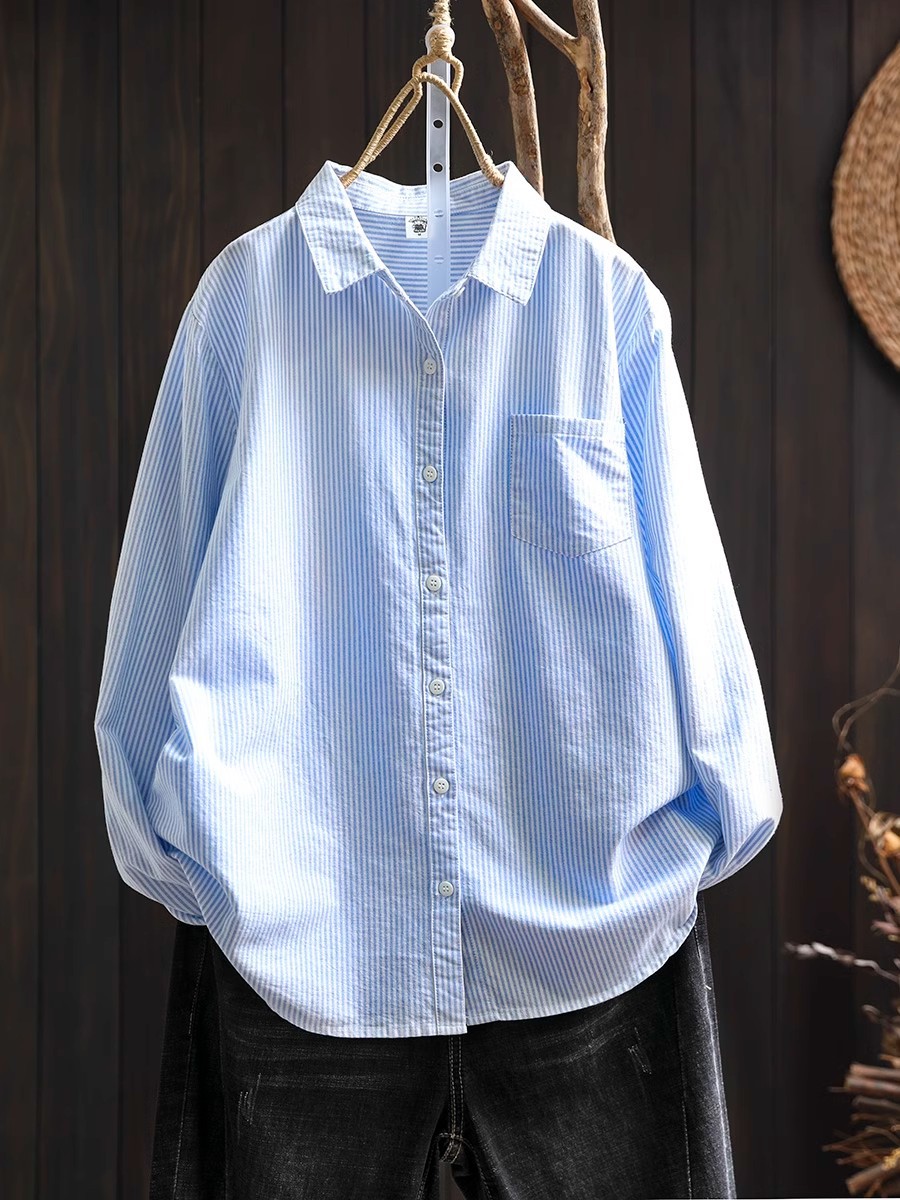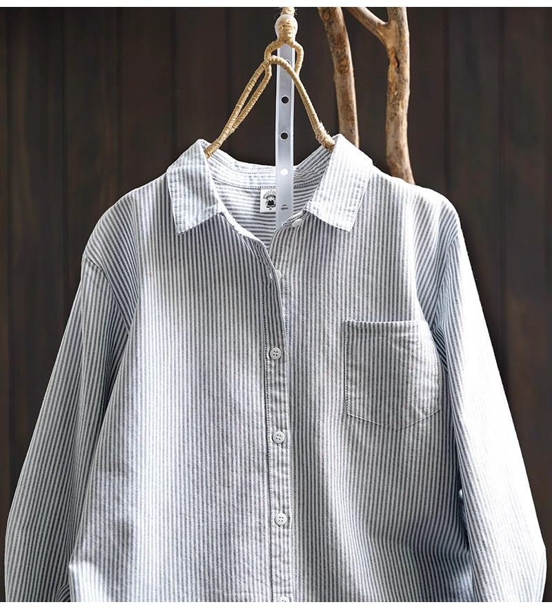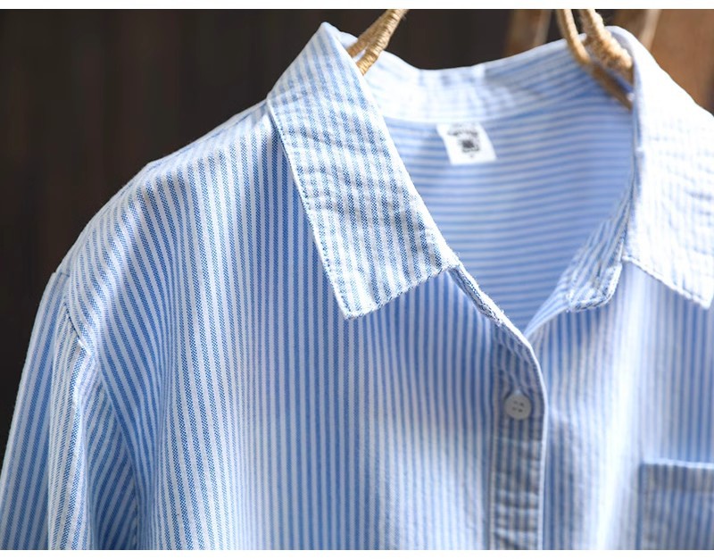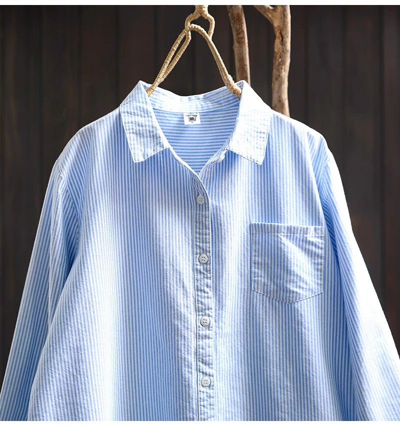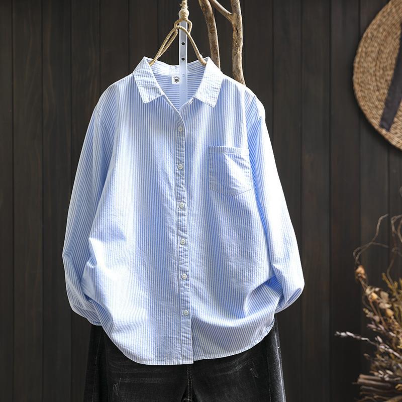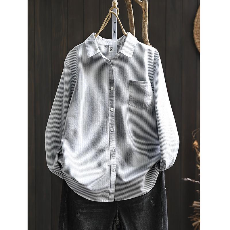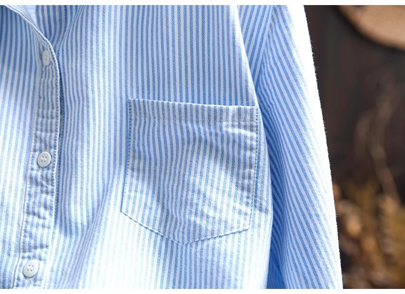 여성용 스몰 포켓 코튼 옥스포드 수직 스트라이프 긴팔 셔츠, 루즈하고 슬림한 봄, 가을 캐주얼 다용도 탑스토어 가기