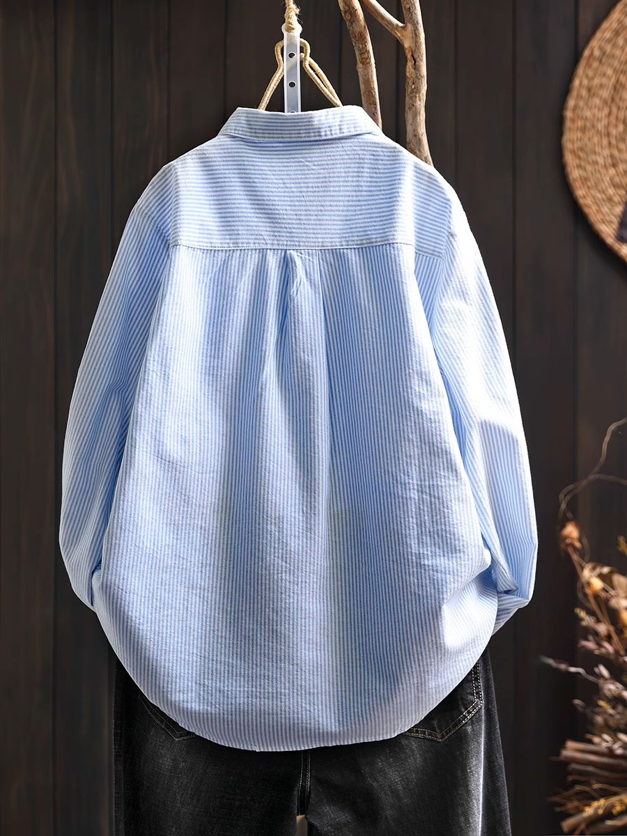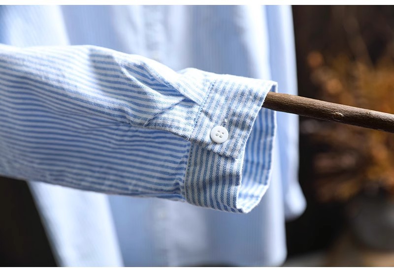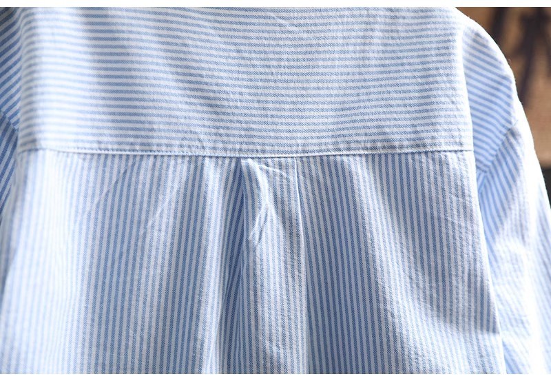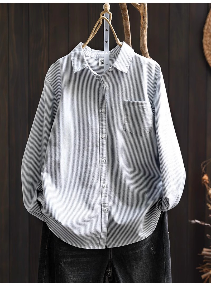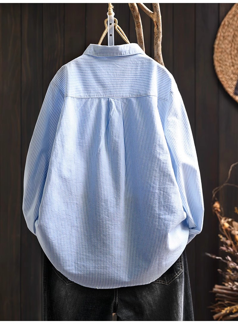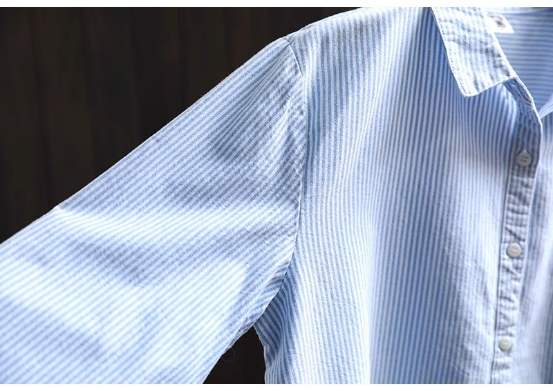 여성용 스몰 포켓 코튼 옥스포드 수직 스트라이프 긴팔 셔츠, 루즈하고 슬림한 봄, 가을 캐주얼 다용도 탑스토어 가기