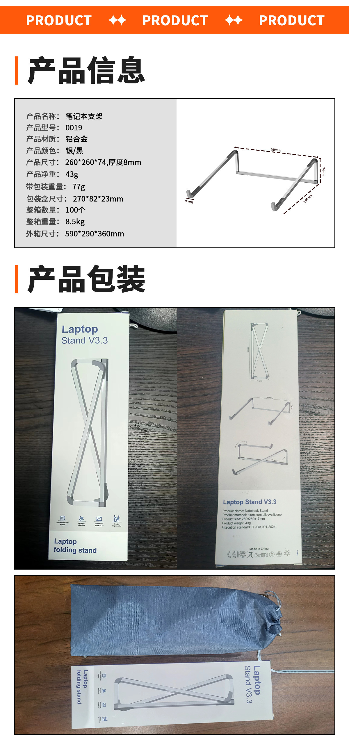 外贸新款铝合金笔记本电脑支架桌面增高折叠收纳散热平板电脑支架