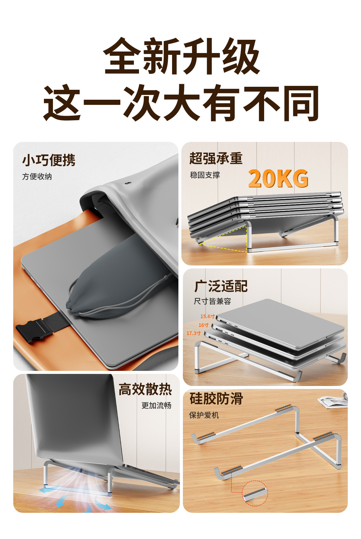 外贸笔记本电脑支架铝合金折叠增高散热支架调节升降便携电脑支架