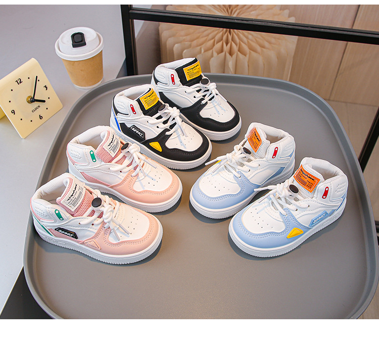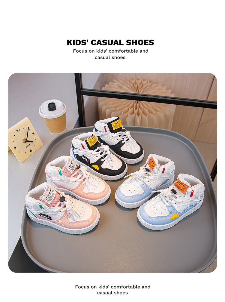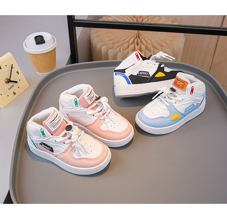 어린이 운동화 2025 봄과 가을 새로운 스타일 소년과 소녀 캐주얼 하이 탑 농구 운동화 어린이를위한 부드러운 밑창 아기 신발