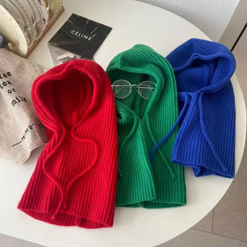 2022 새로운 발라 모자 여성의 가을과 겨울 니트 모자 따뜻한 목 세트 모자 스카프 통합 모자 울 모자 귀 보호 모자