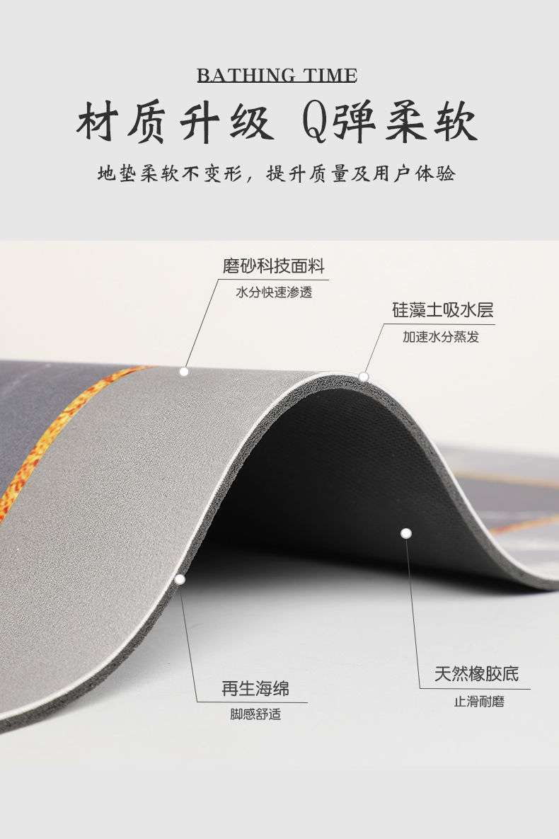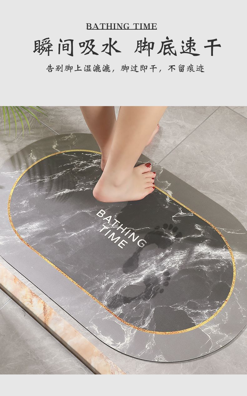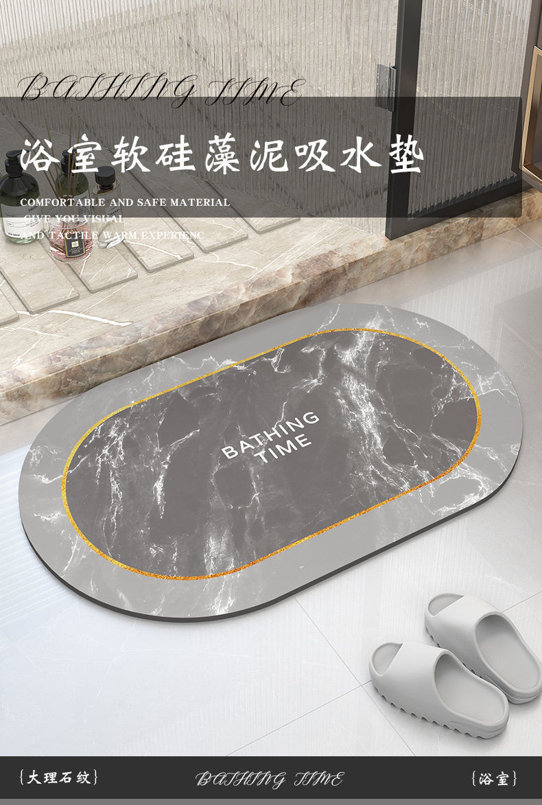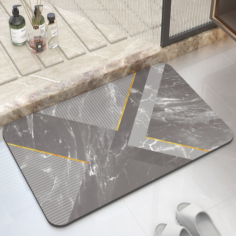 욕실을 위한 심플하고 우아한 대리석 줄무늬 규조토 진흙 부드러운 쿠션, 욕실 문 미끄럼 방지, 흡수성 및 속건성 장식 발