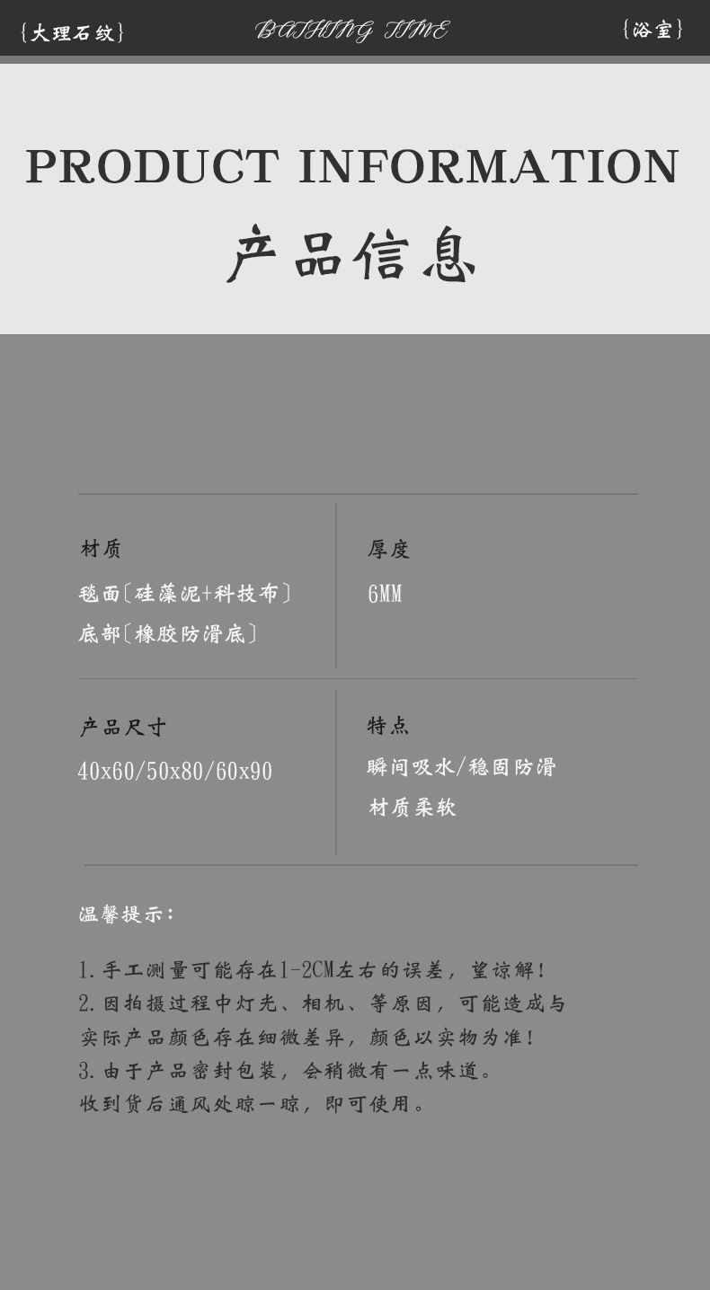 욕실을 위한 심플하고 우아한 대리석 줄무늬 규조토 진흙 부드러운 쿠션, 욕실 문 미끄럼 방지, 흡수성 및 속건성 장식 발스토어 가기