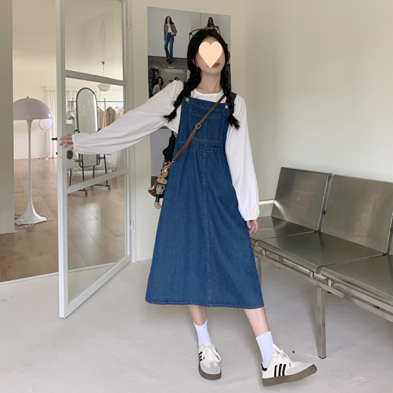 • 투피스 세트 [서스펜더 스커트 + 긴팔 셔츠]
