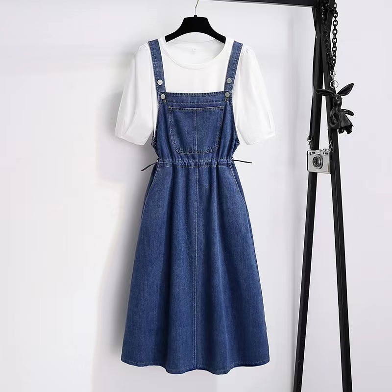 • 투피스 세트 [서스펜더 스커트 + 반팔 셔츠]