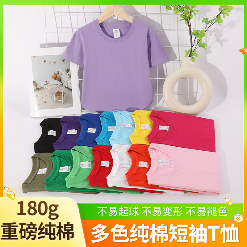 제조 업체 도매 15 색 어린이 단색 반팔 티셔츠 캐주얼 라운드 넥 아동 의류 탑 클래스 유니폼 그룹 유니폼 맞춤형 흰색 티셔츠스토어 가기