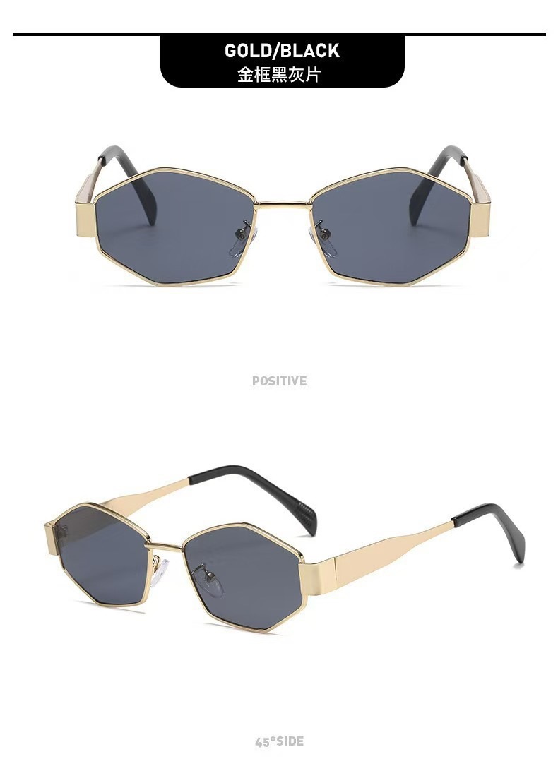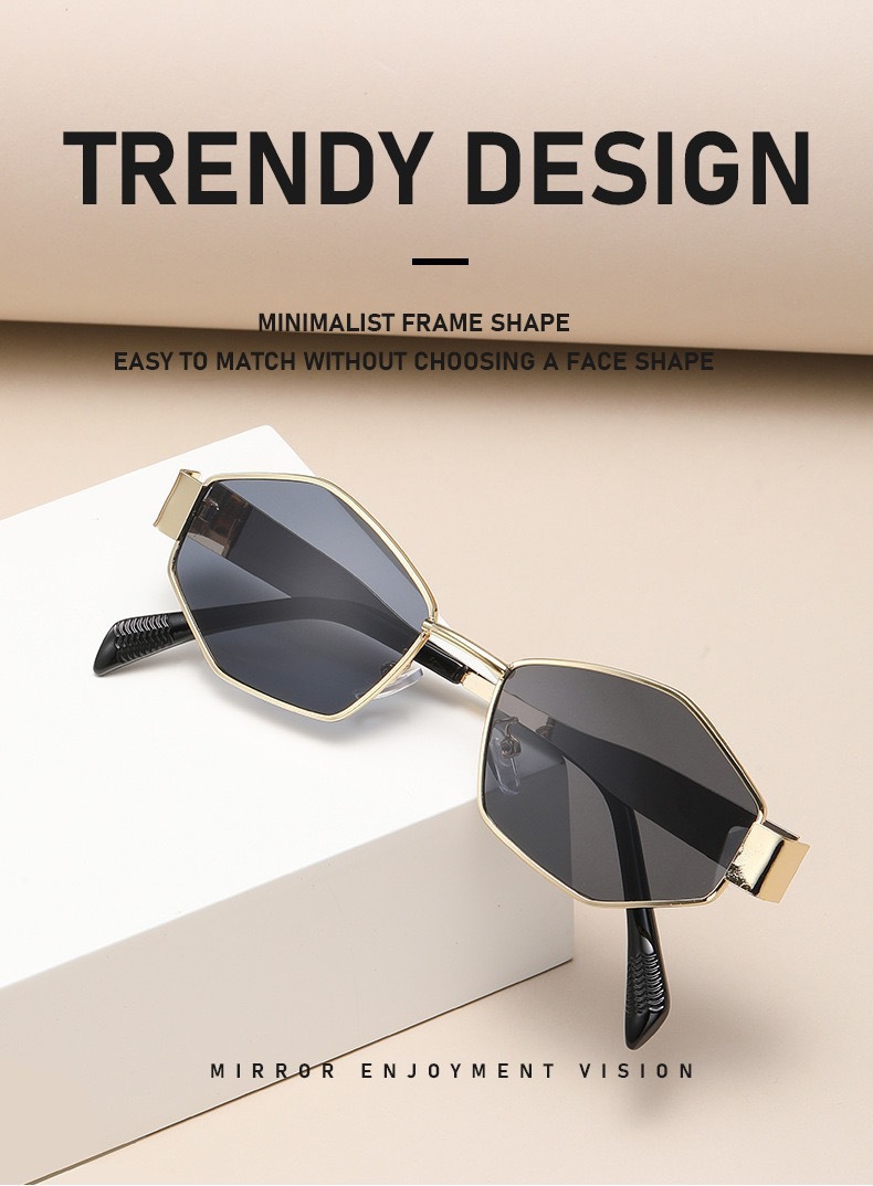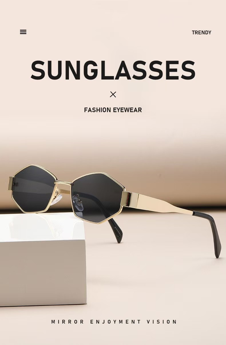 남성과 여성을 위한 유럽과 미국의 맞춤형 마름모 불규칙 금속 선글라스, 거리 오목 모양의 자외선 차단 및 자외선 차단 선글라스