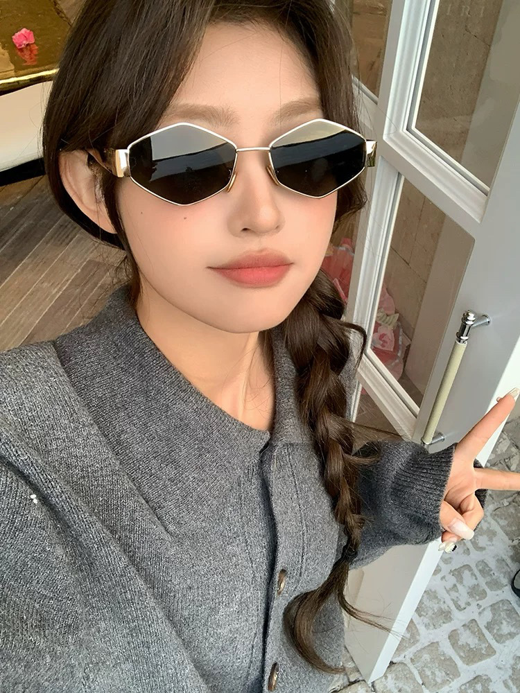 남성과 여성을 위한 유럽과 미국의 맞춤형 마름모 불규칙 금속 선글라스, 거리 오목 모양의 자외선 차단 및 자외선 차단 선글라스스토어 가기