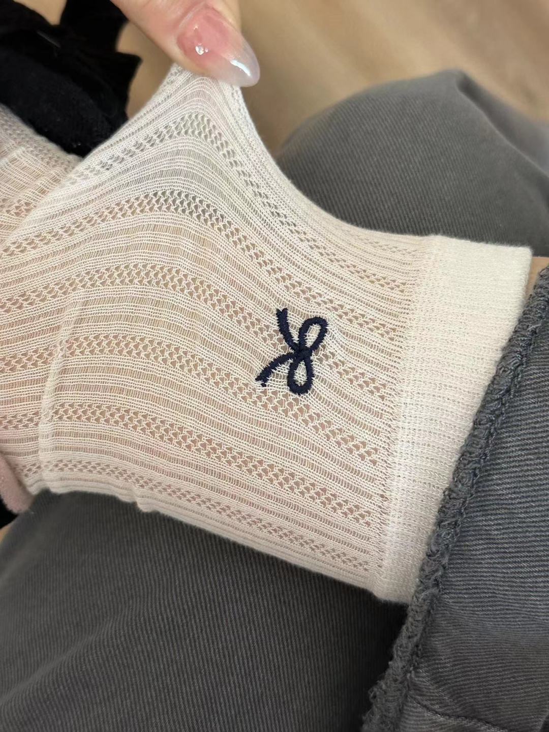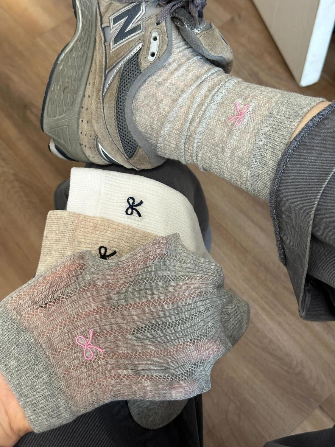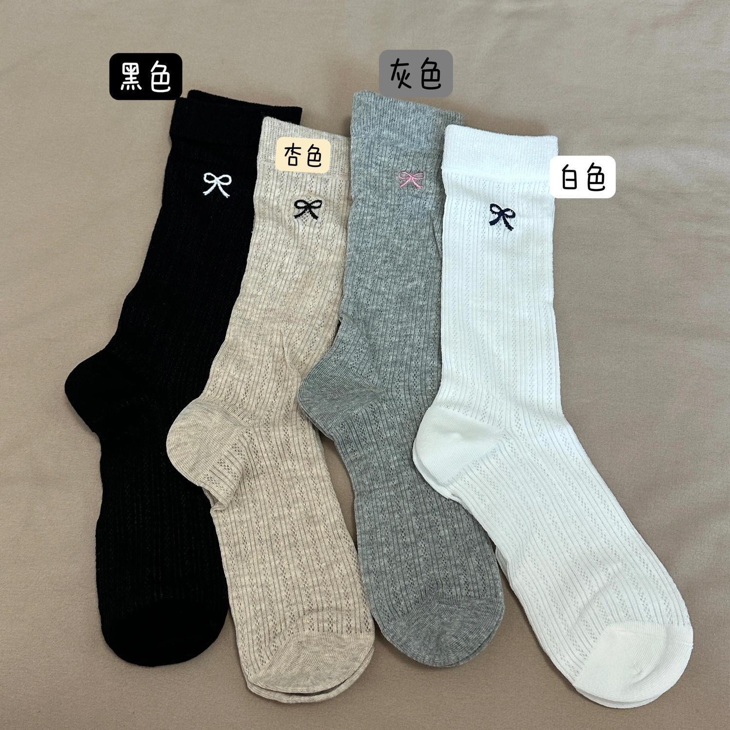 한국 스타일의 패셔너블하고 다재다능한 단색 중공 메쉬 양말 봄과 여름 스타일의 작은 신선한 리본 양말스토어 가기