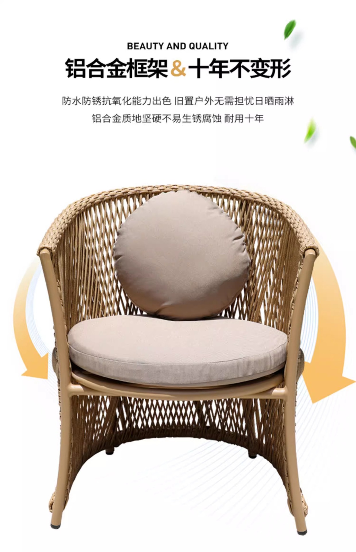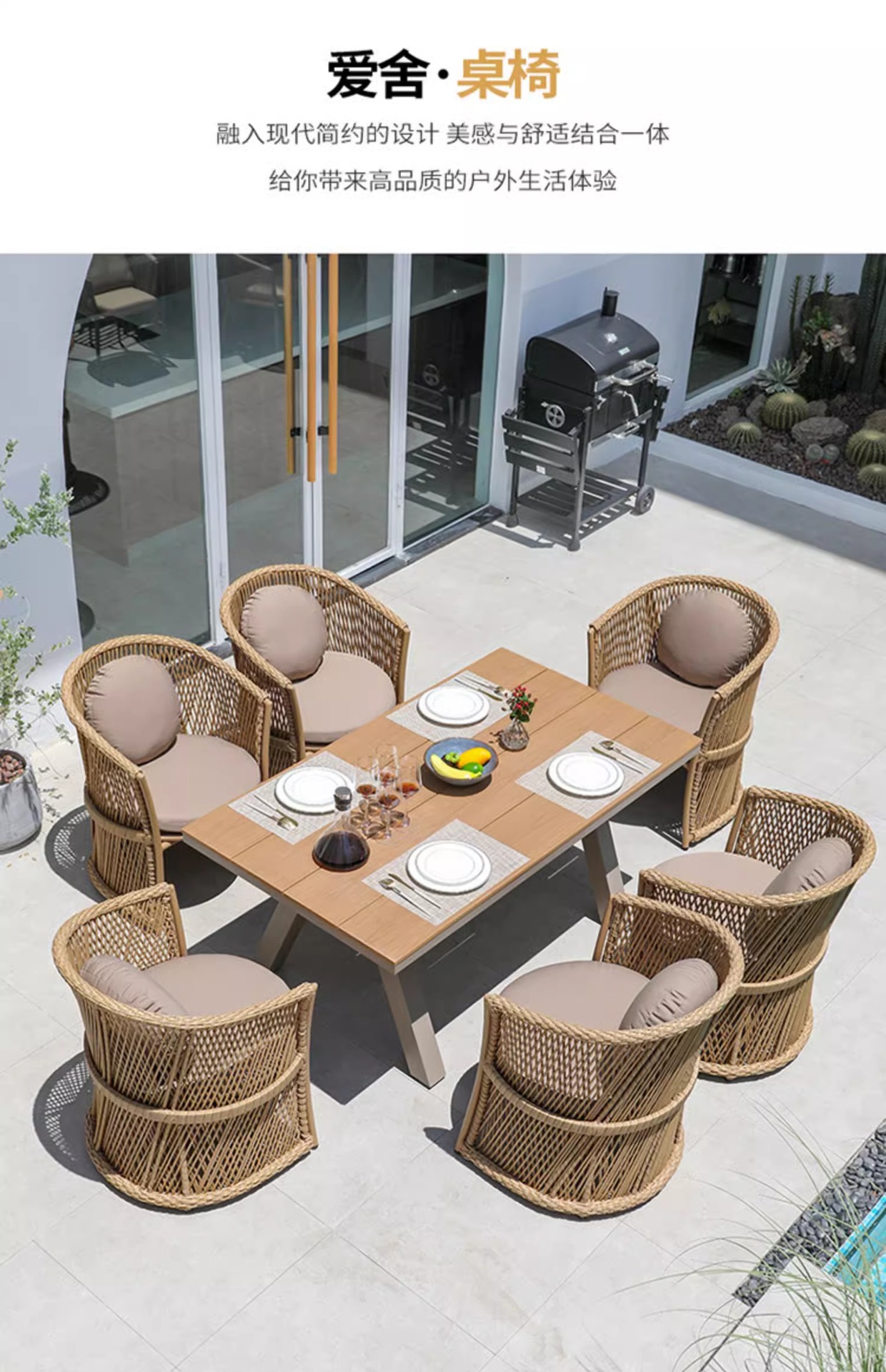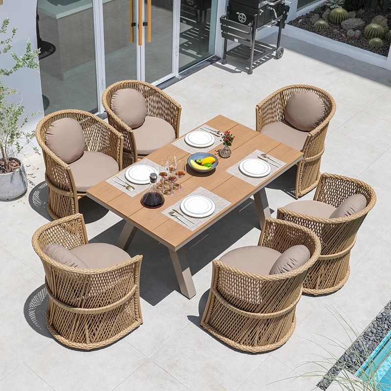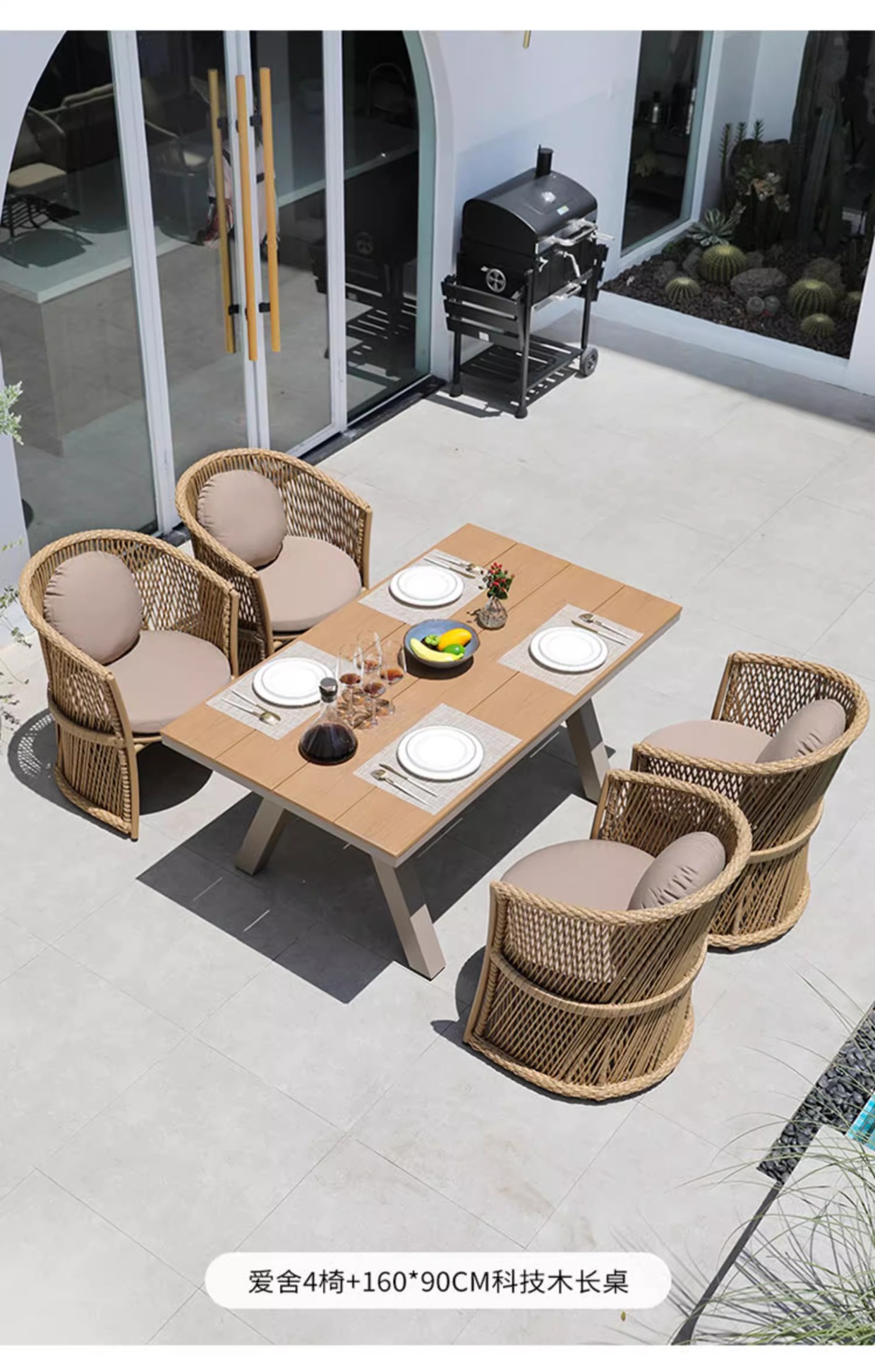 야외 테이블과 의자, 빌라 안뜰 정원 레저 식탁과 의자, 알루미늄 합금 방수 및 자외선 차단제, 고급 야외 등나무 의자스토어 가기