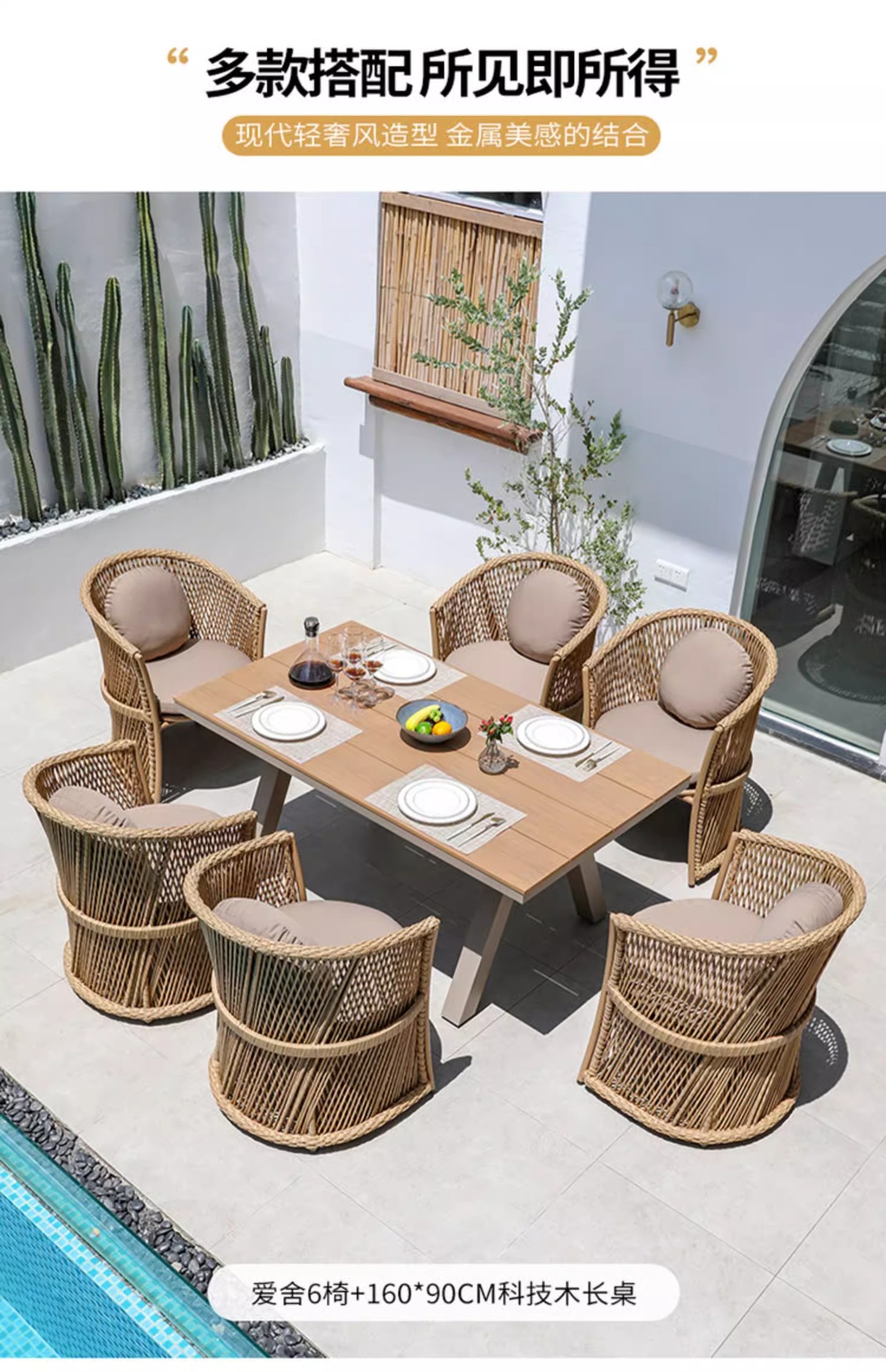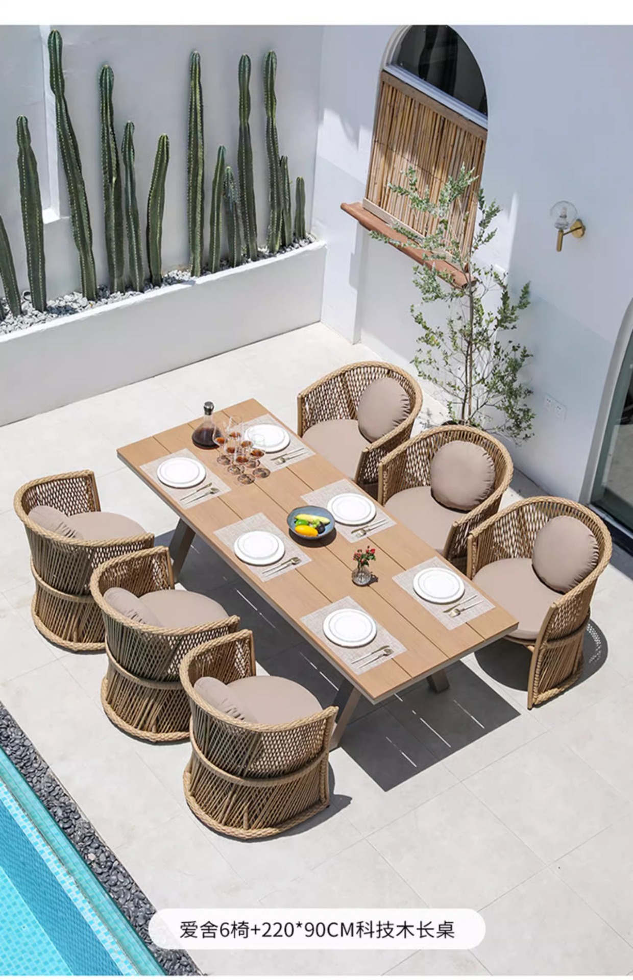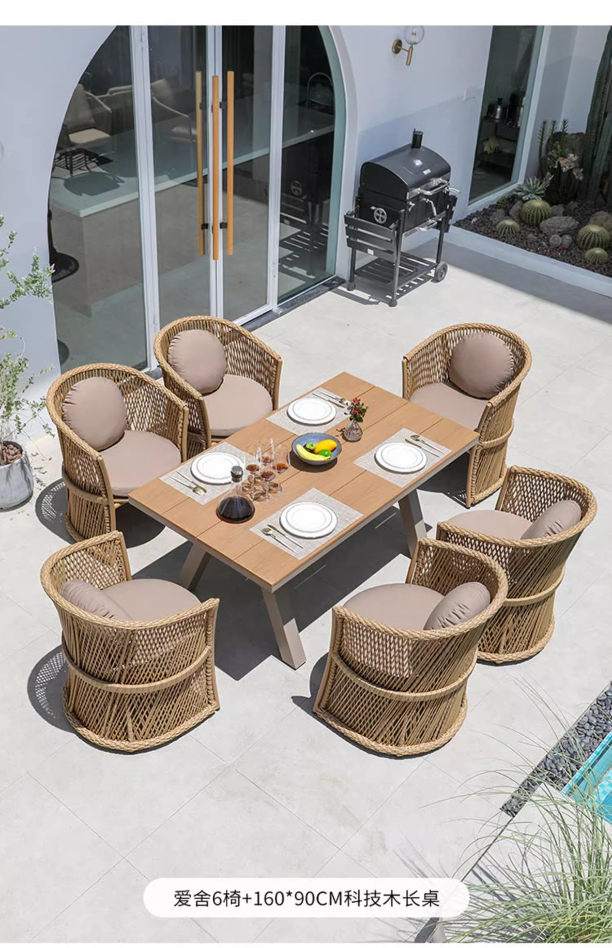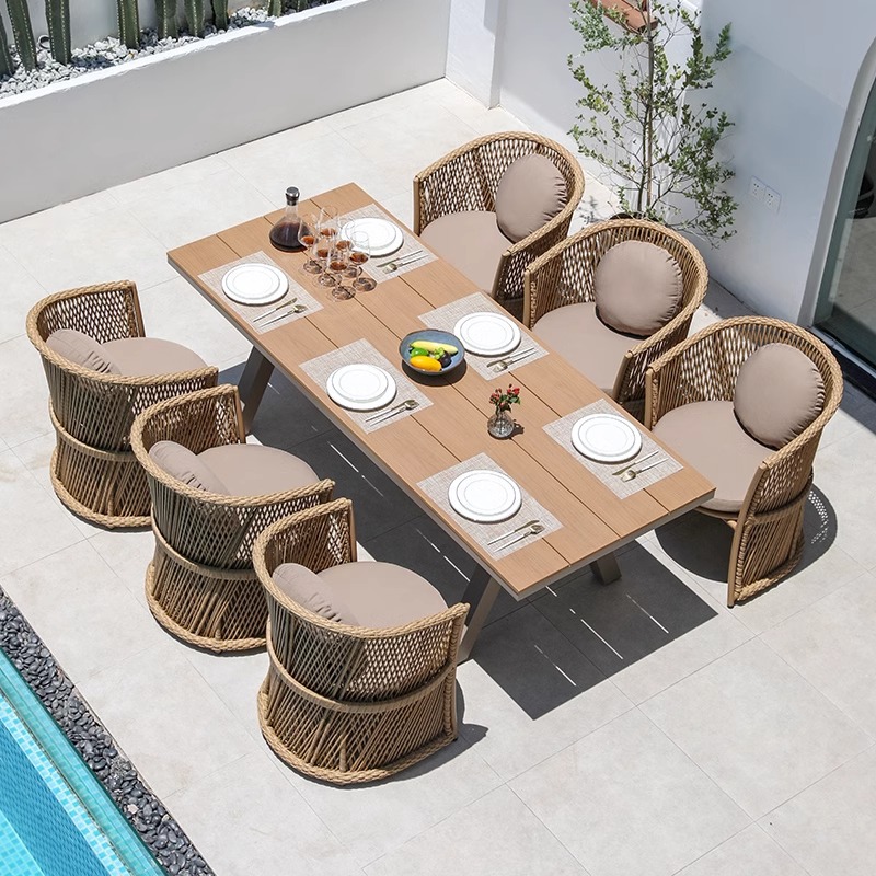야외 테이블과 의자, 빌라 안뜰 정원 레저 식탁과 의자, 알루미늄 합금 방수 및 자외선 차단제, 고급 야외 등나무 의자스토어 가기