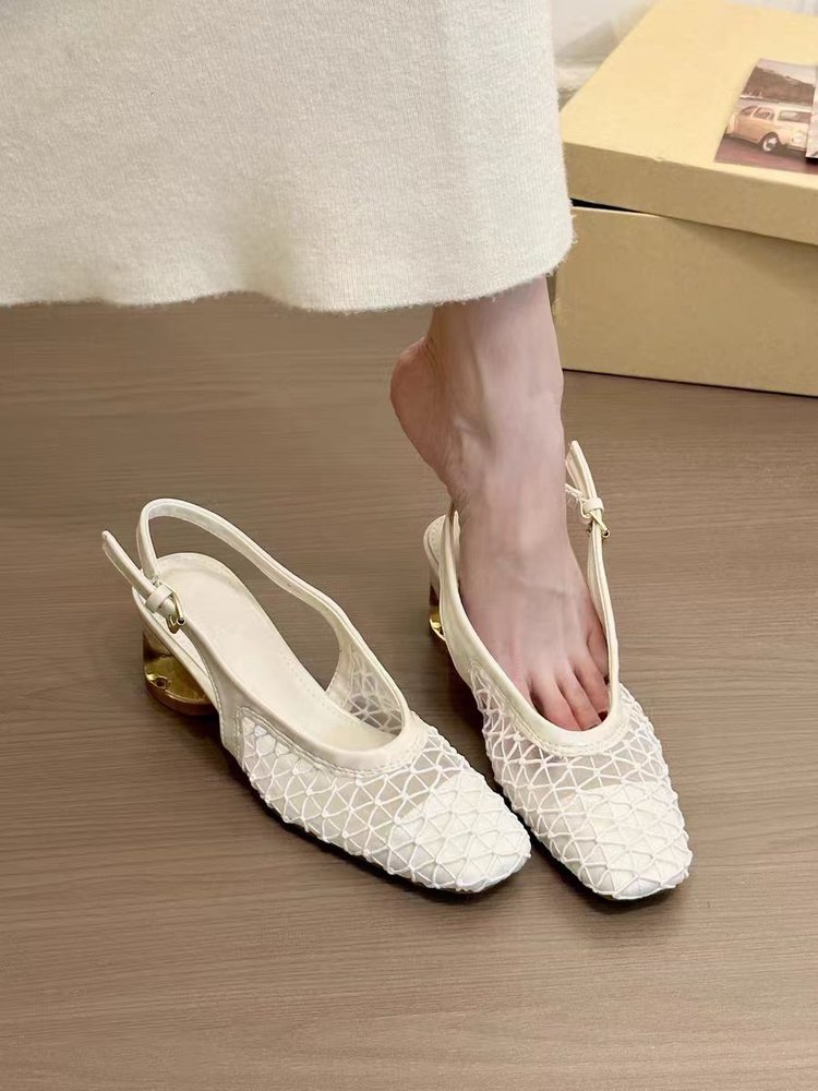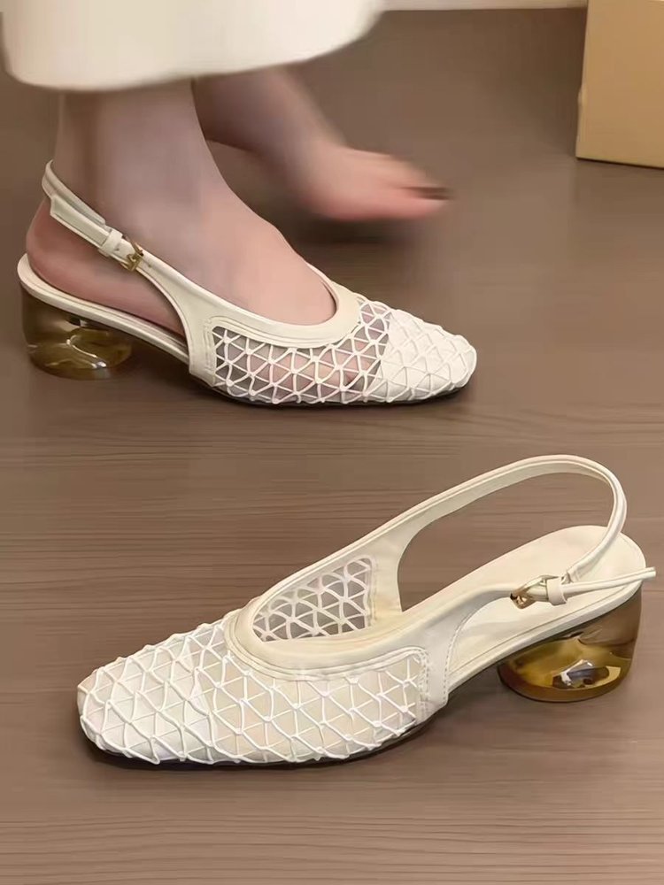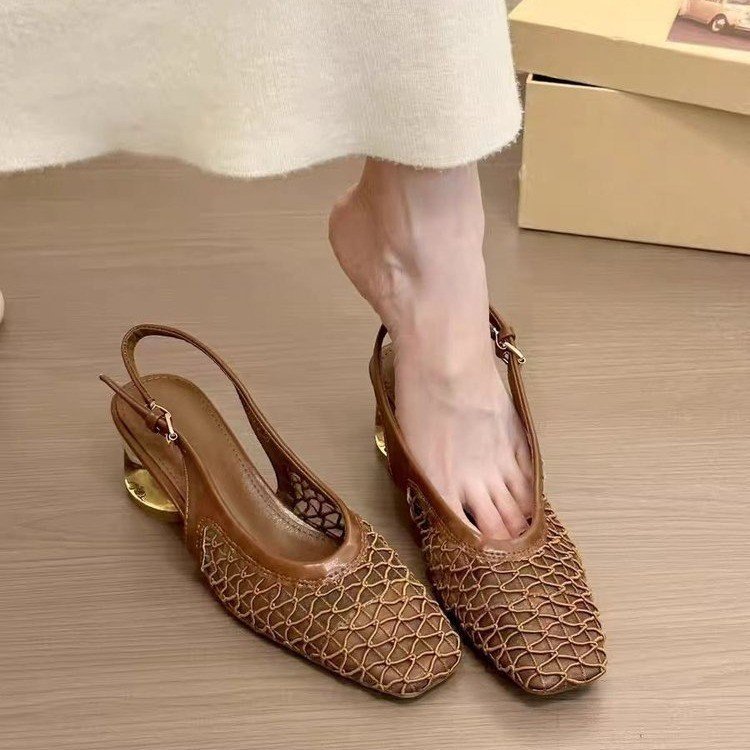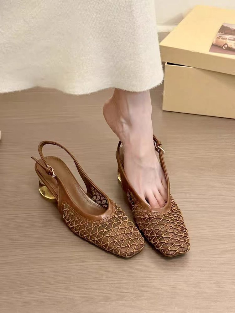 여성을 위한 프렌치 스타일 스퀘어 토 우븐 샌들, 2025년 새로운 디자인, 스커트, 크리스탈 힐 슈즈스토어 가기