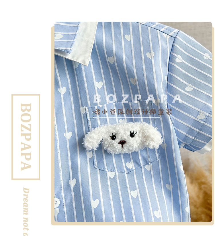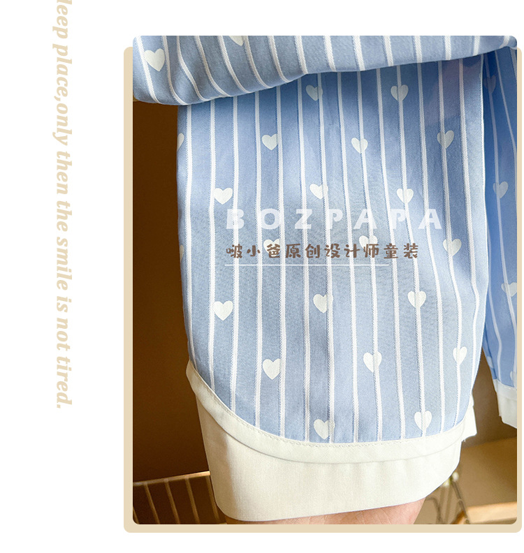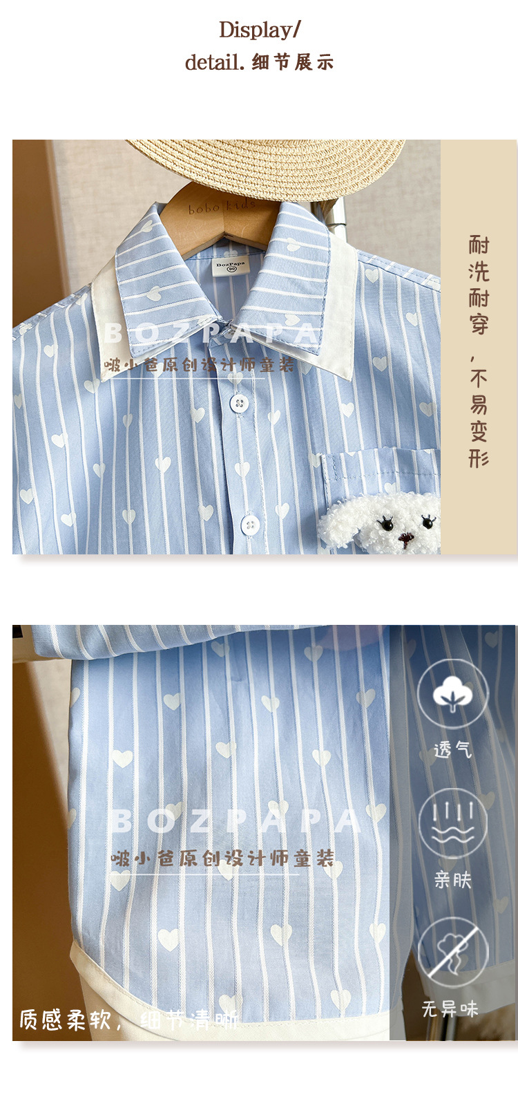 2025 새로운 여름 소년 한국 캐주얼 반팔 투피스 세트 어린이 베이비 스트라이프 러브 셔츠 세트스토어 가기