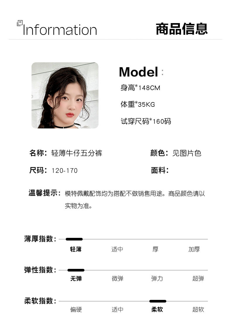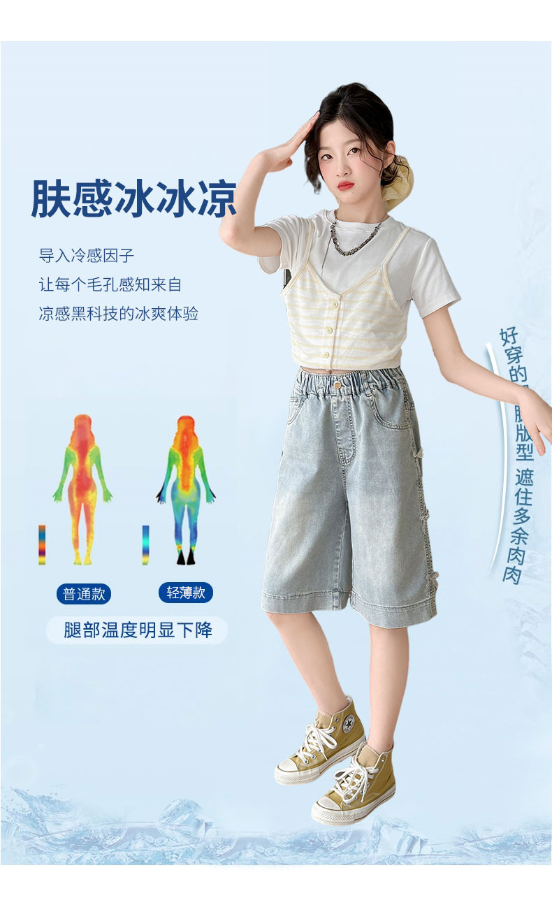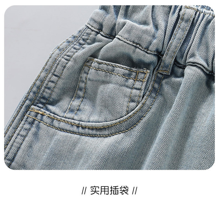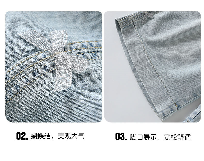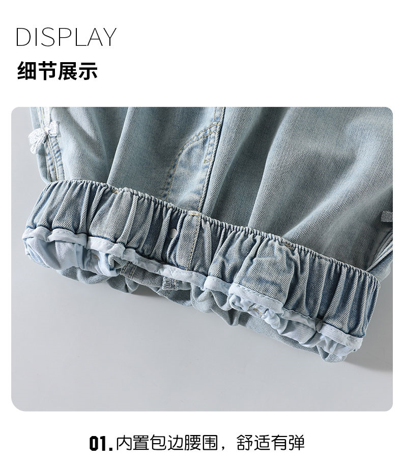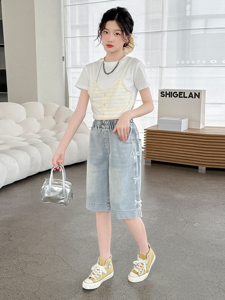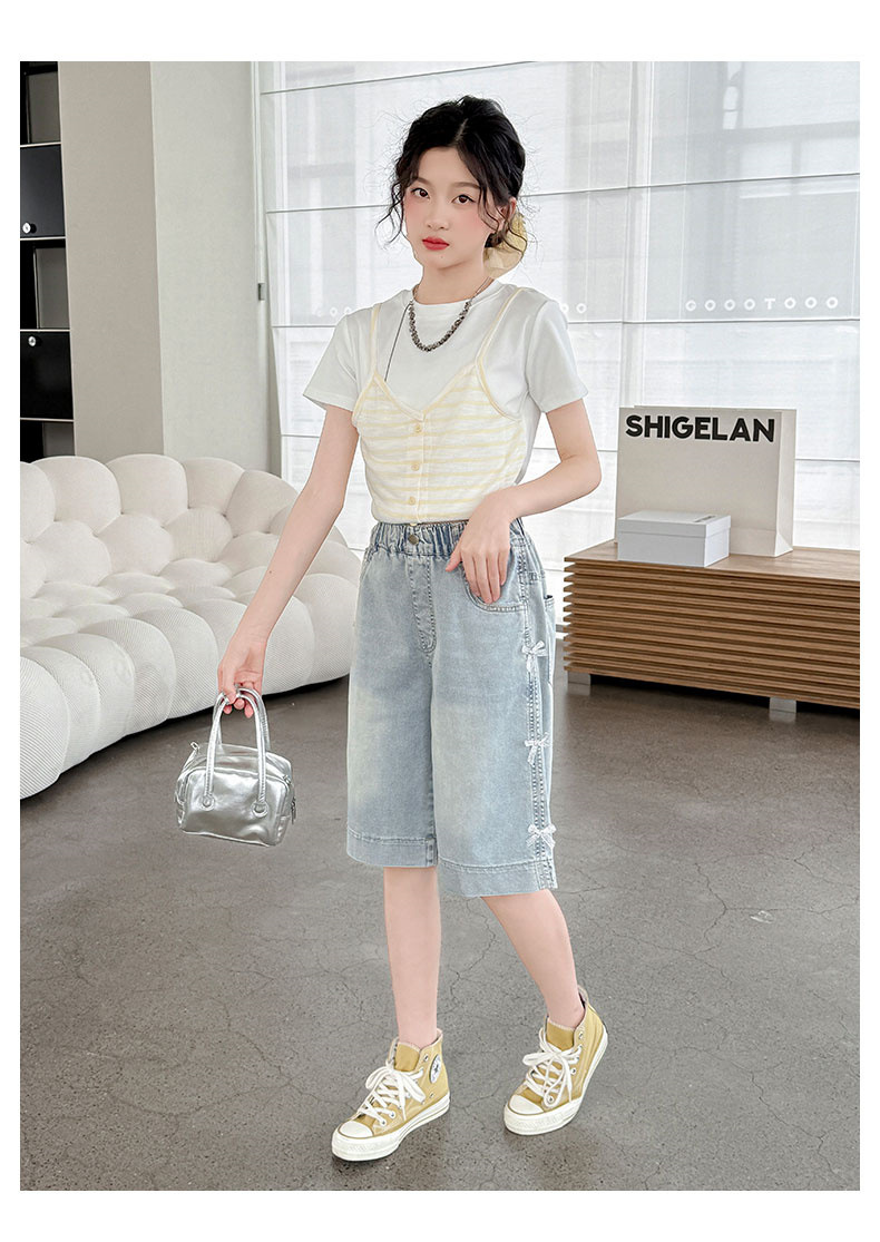 소녀의 여름 데님 중간 길이 바지 2025 새로운 세련된 패셔너블 사이드 활 중간 길이의 어린이 한국 반바지스토어 가기