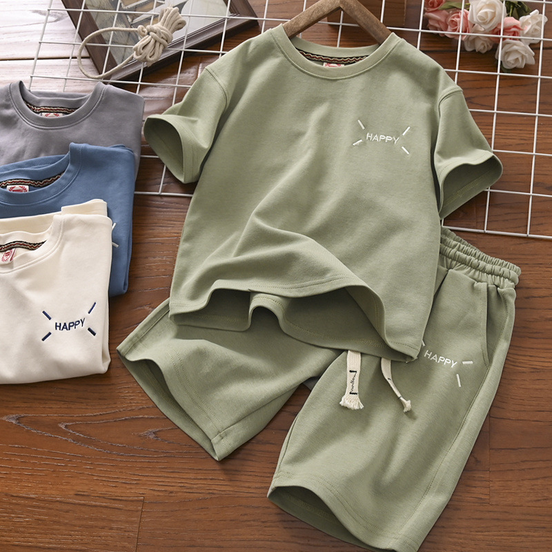 소년 여름 정장 2025 새로운 어린이 반팔 스포츠 캐주얼 패션 아동 의류 얇은 중대형 어린이 투피스 세트