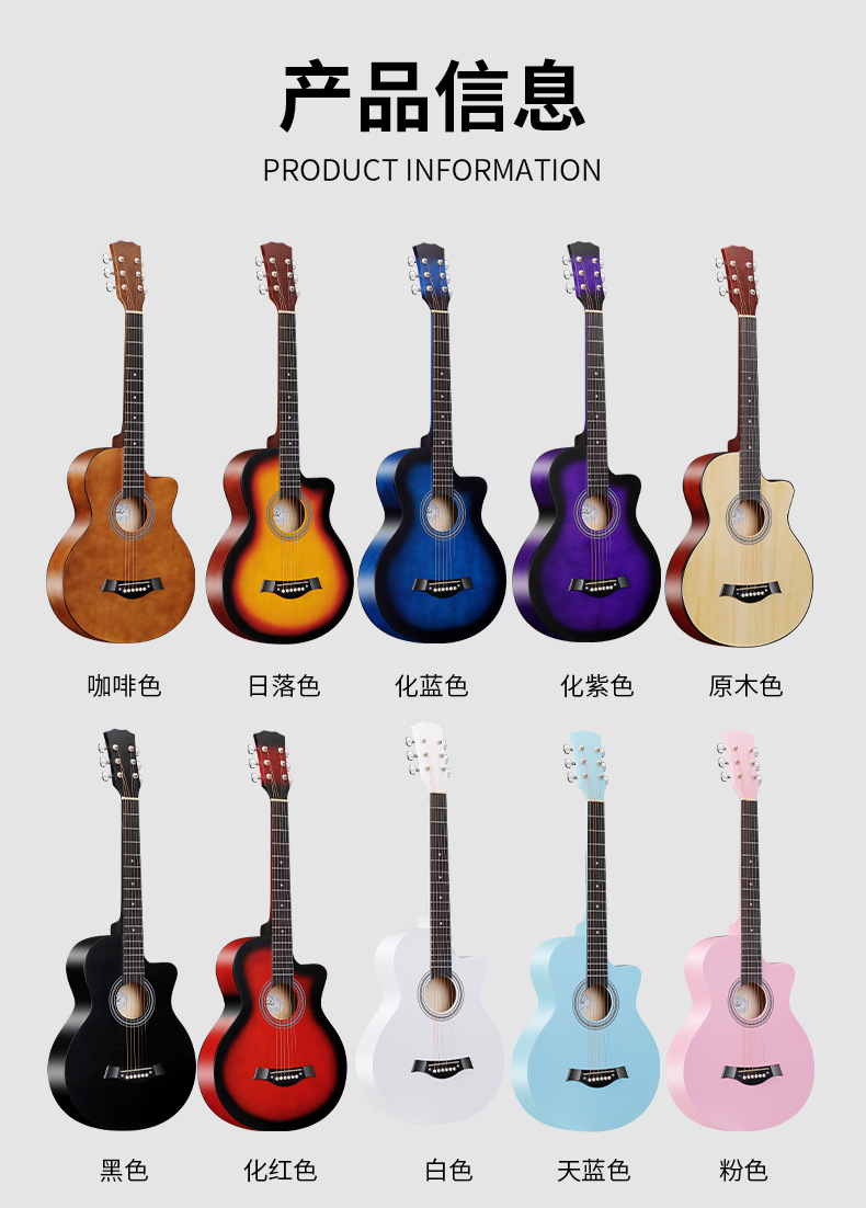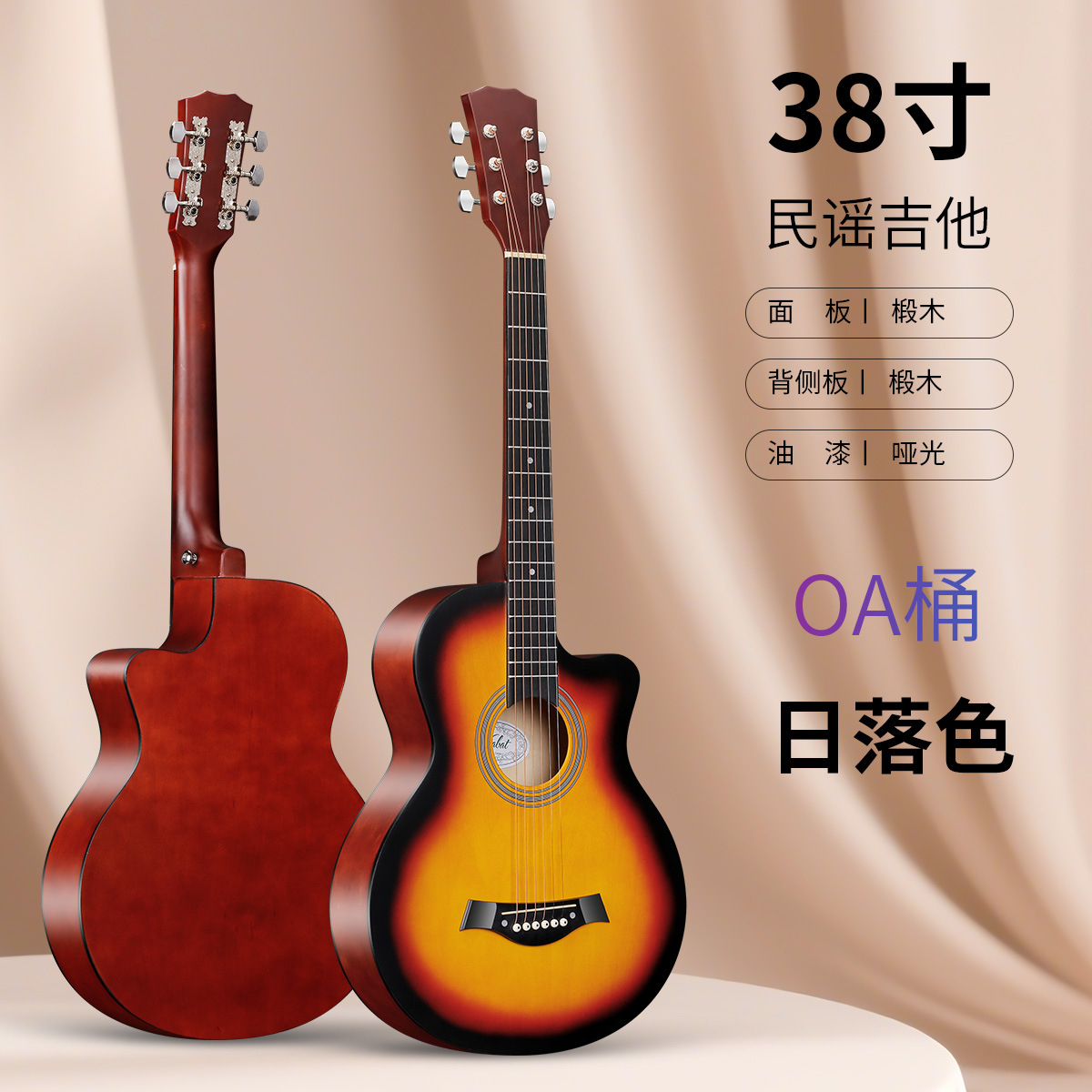 ✅38 인치 OA 배럴 기타 도매 많은 재고 어쿠스틱 어쿠스틱 기타 초보자가 피아노 색상을 연습합니다.스토어 가기