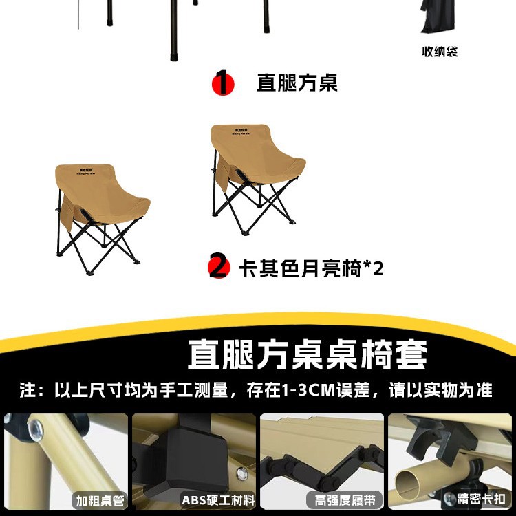 • [스트레이트 레그 테이블] 베이지색 사각 테이블 + 카키색 빅문 의자 2개
