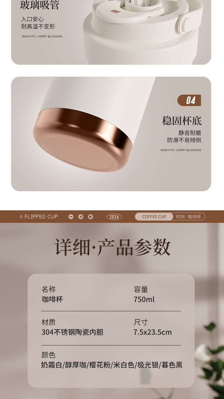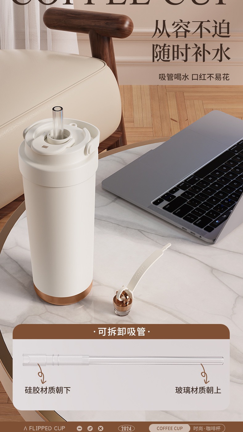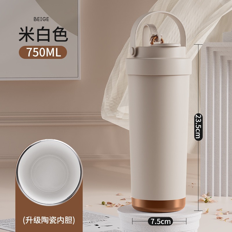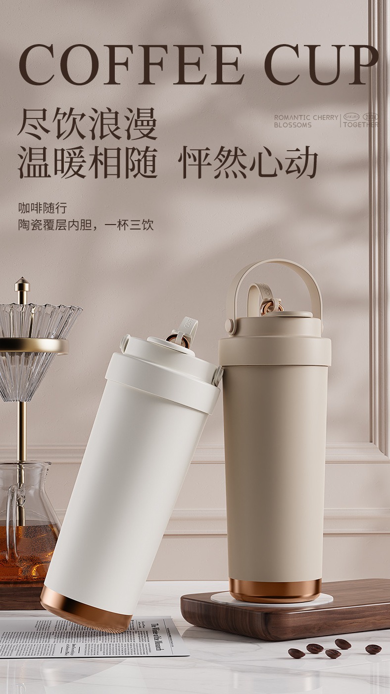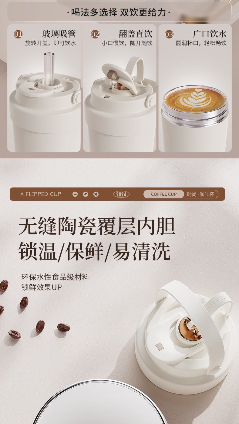 국경을 넘나드는 고급 보온병 컵 316 스테인레스 스틸 세라믹 라이너 커피 컵 휴대용 밀짚 컵