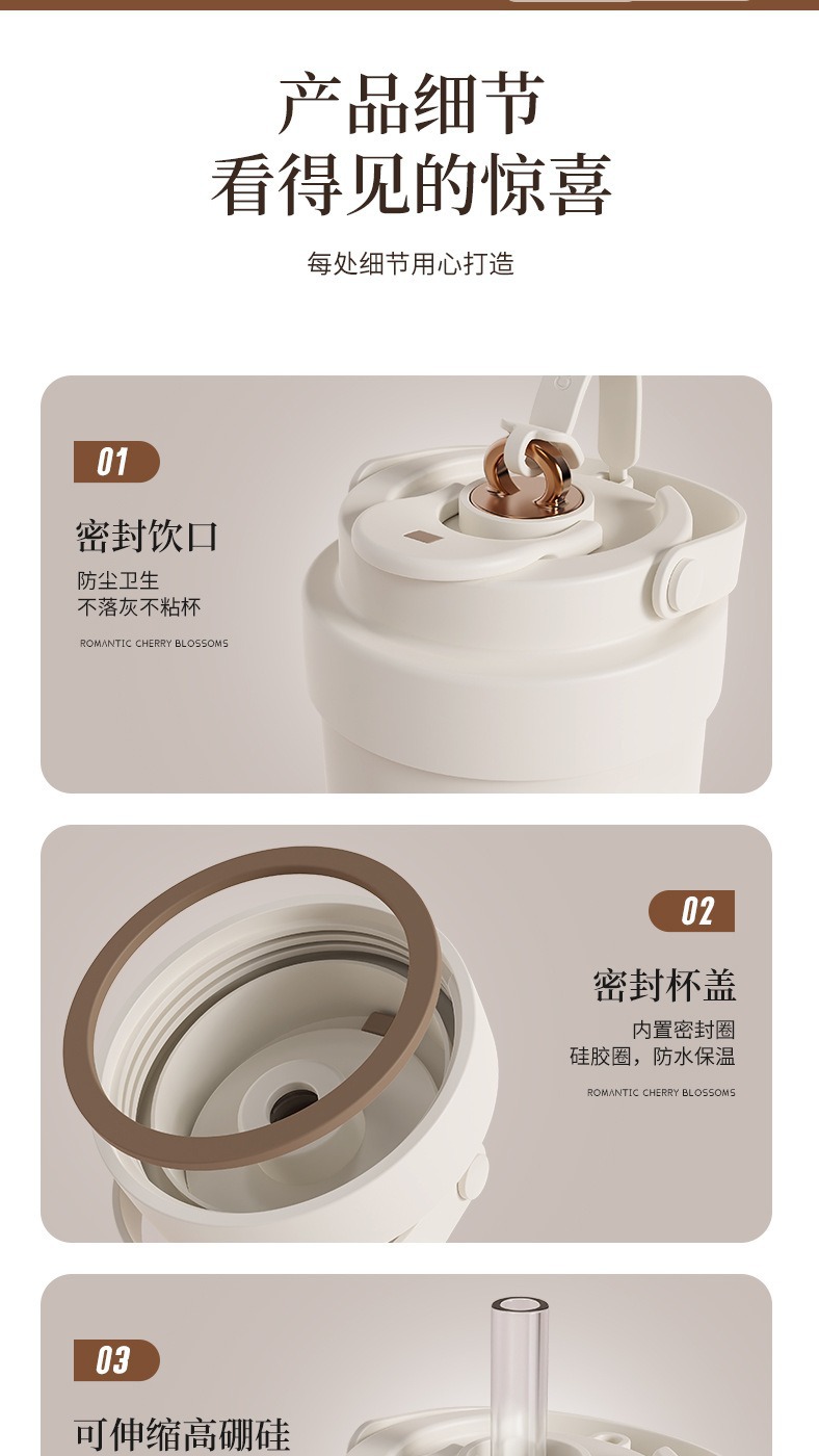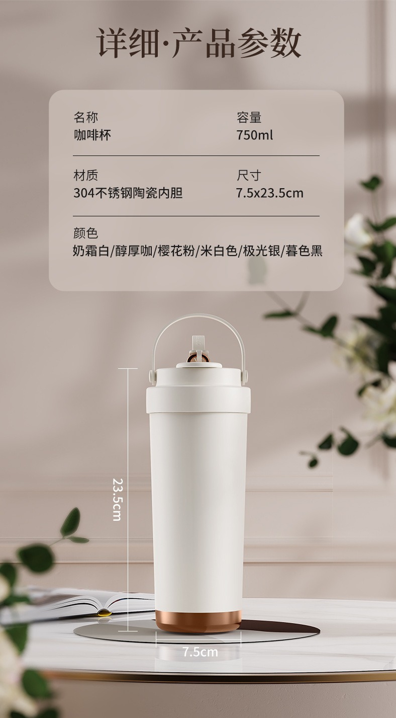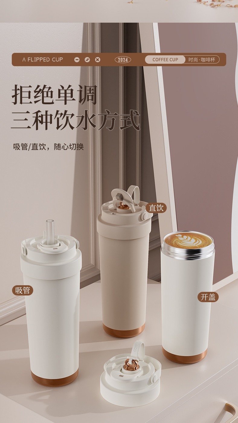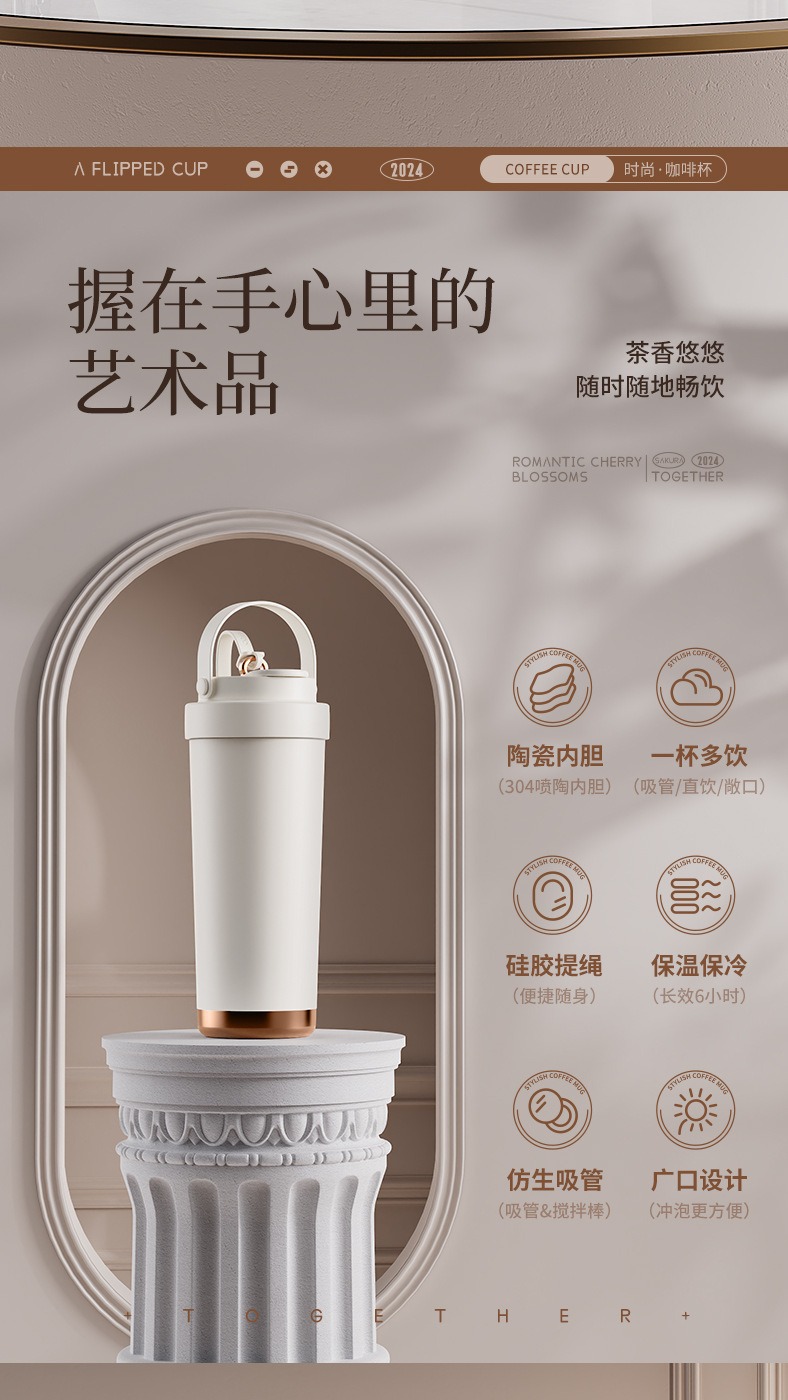 국경을 넘나드는 고급 보온병 컵 316 스테인레스 스틸 세라믹 라이너 커피 컵 휴대용 밀짚 컵