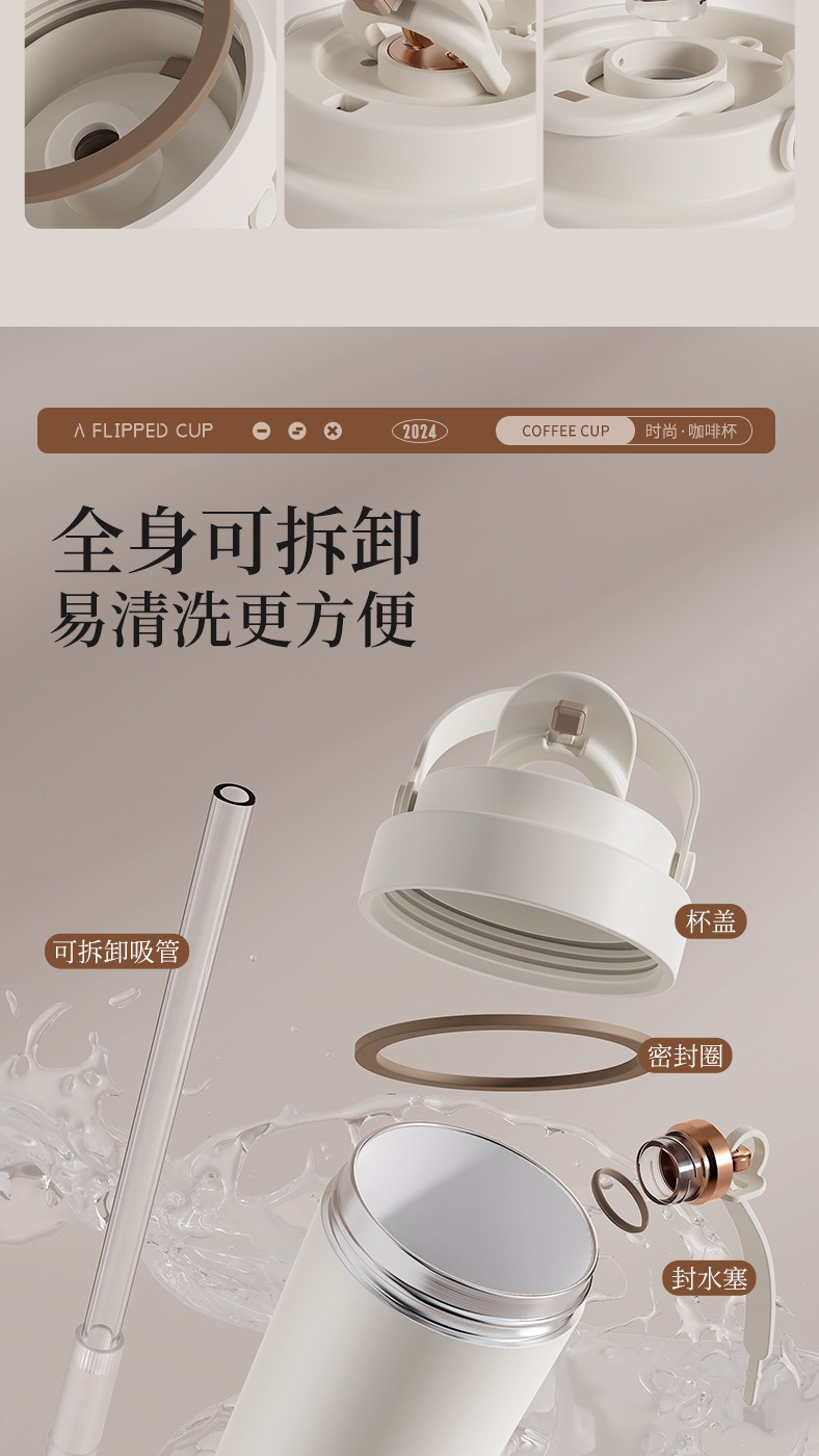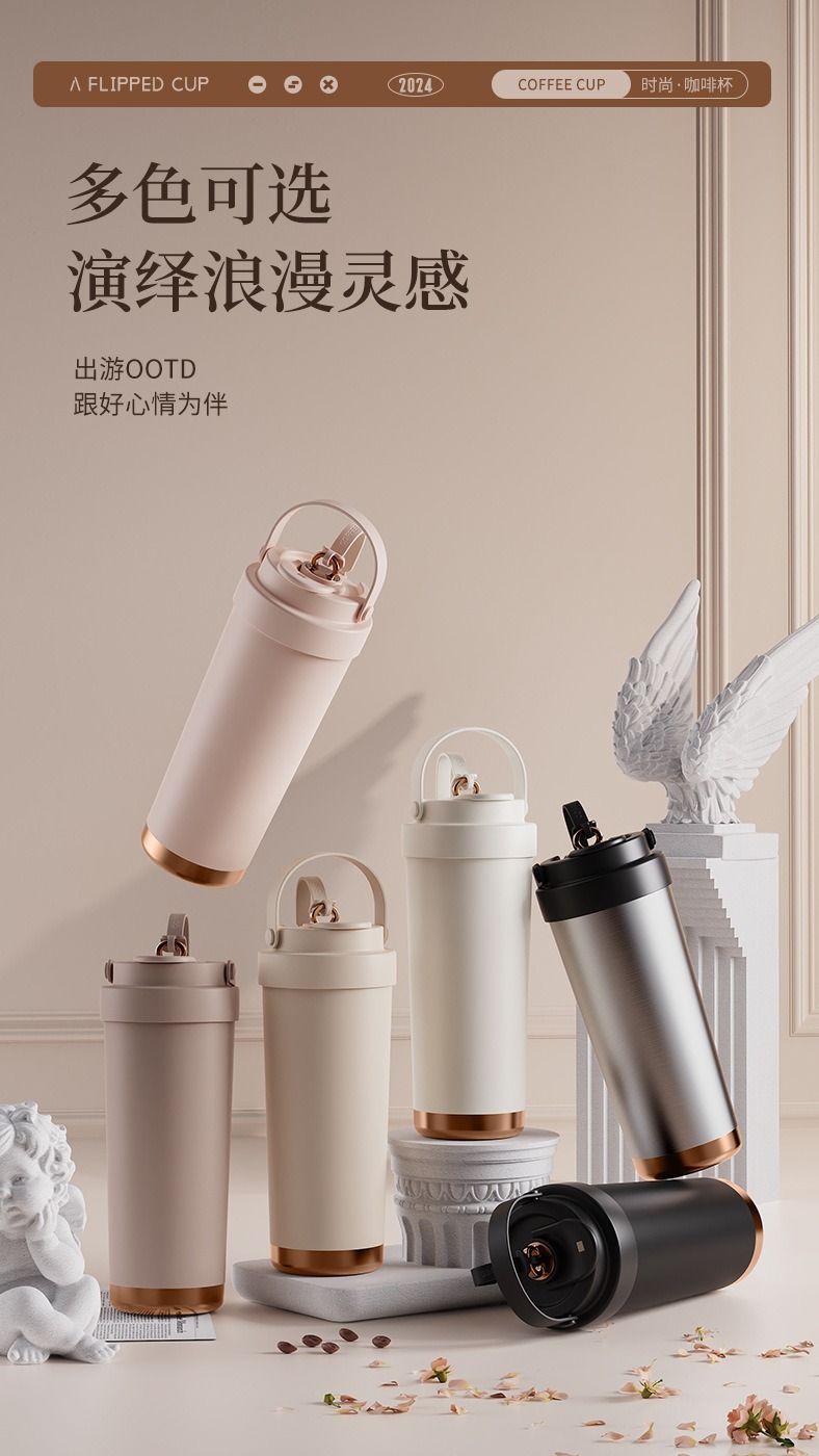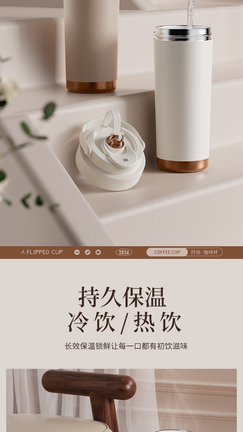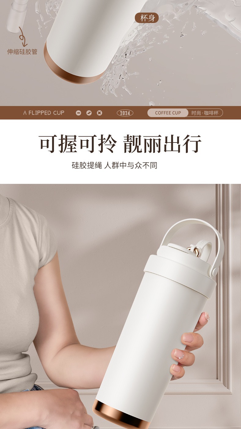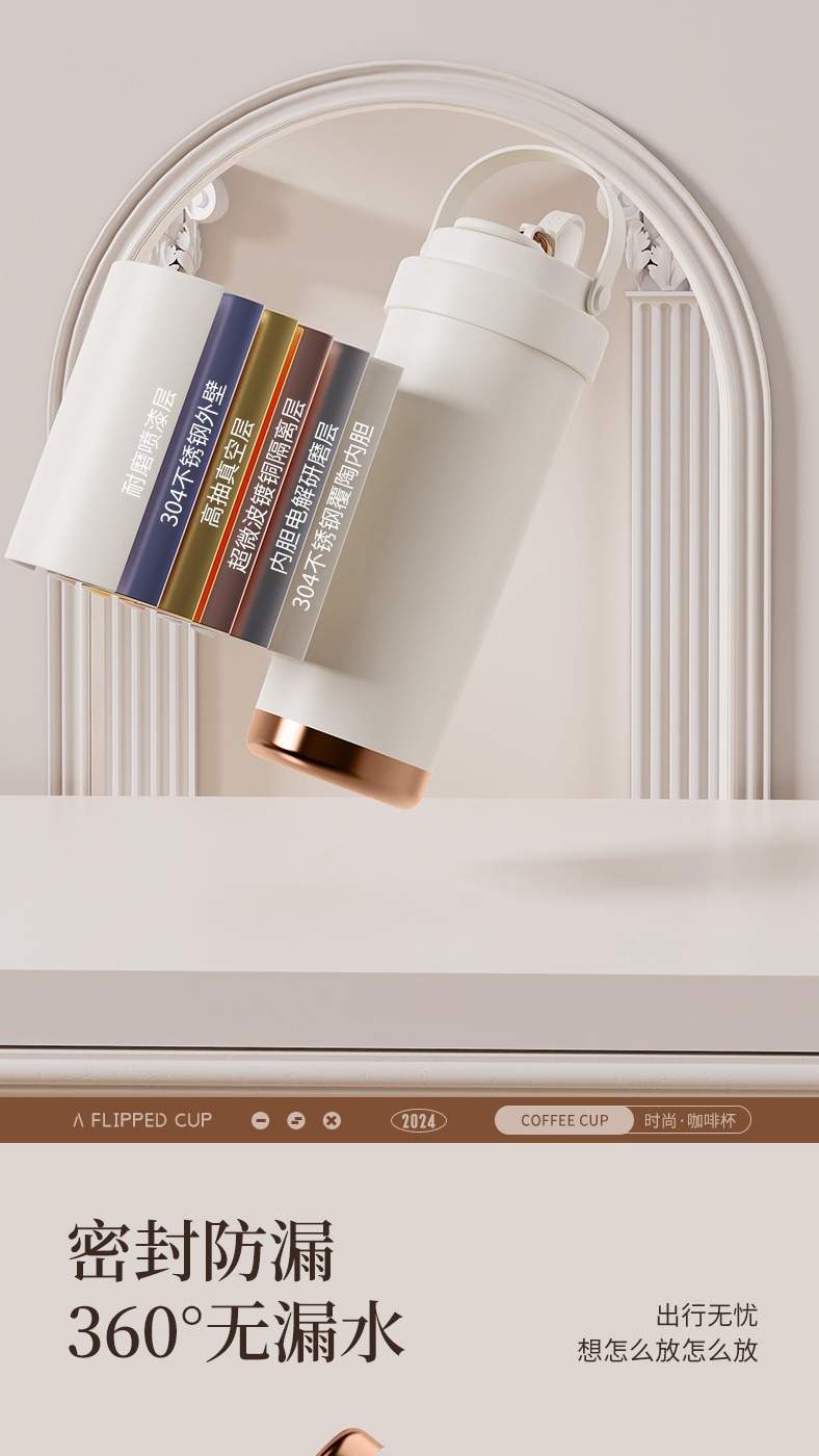 국경을 넘나드는 고급 보온병 컵 316 스테인레스 스틸 세라믹 라이너 커피 컵 휴대용 밀짚 컵