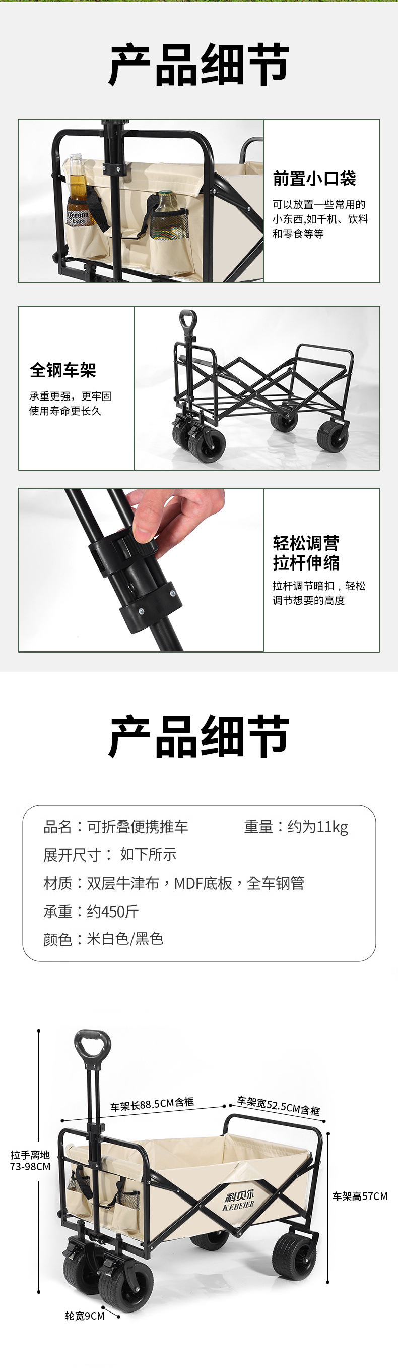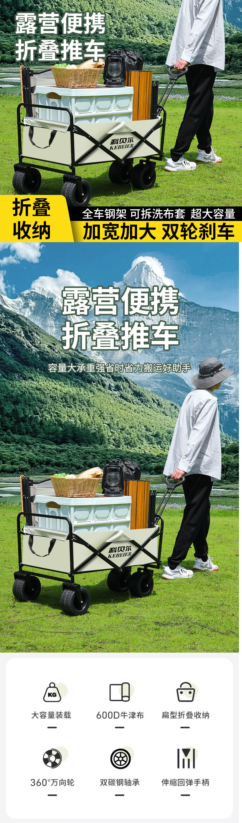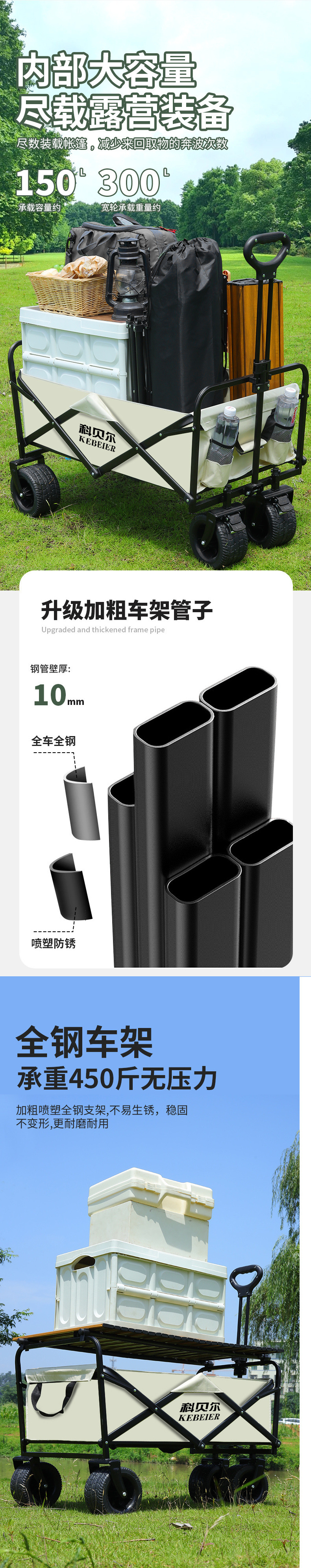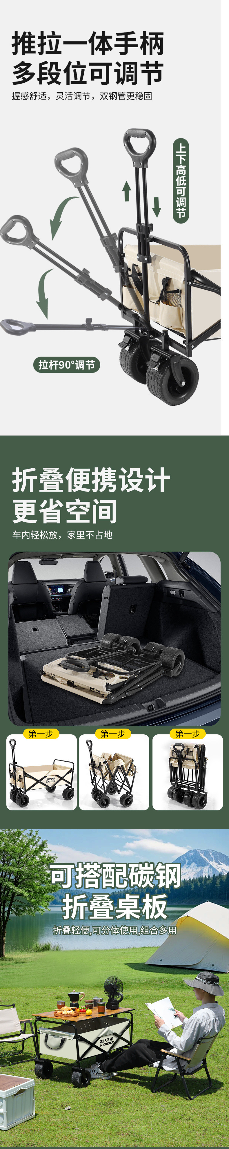 캠핑카 야외 접이식 트롤리 대형 캠프 자동차 피크닉 자동차 트레일러 캠핑 핸드 트롤리 스톨 트롤리