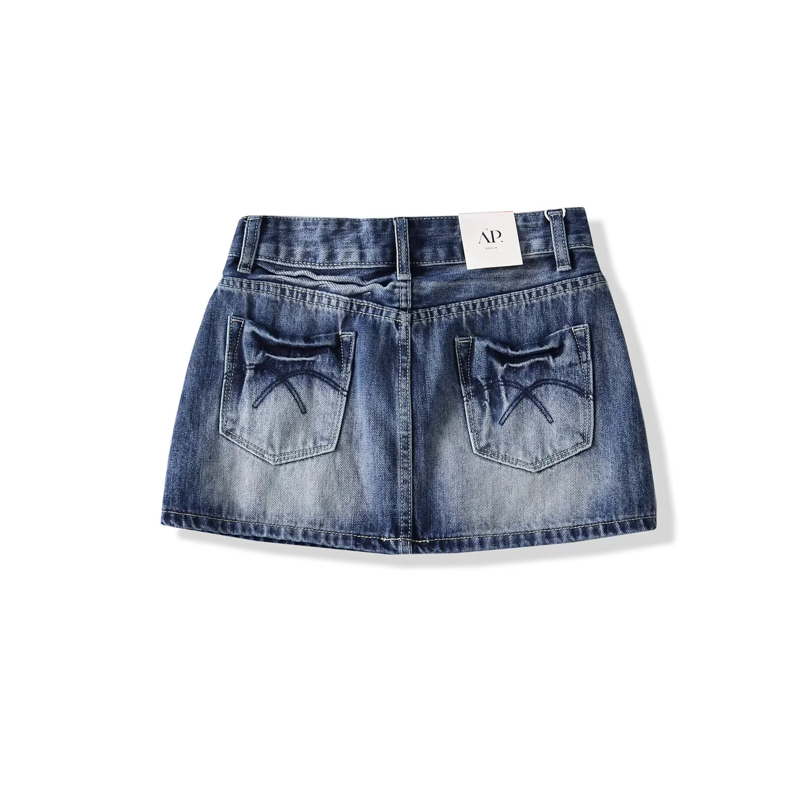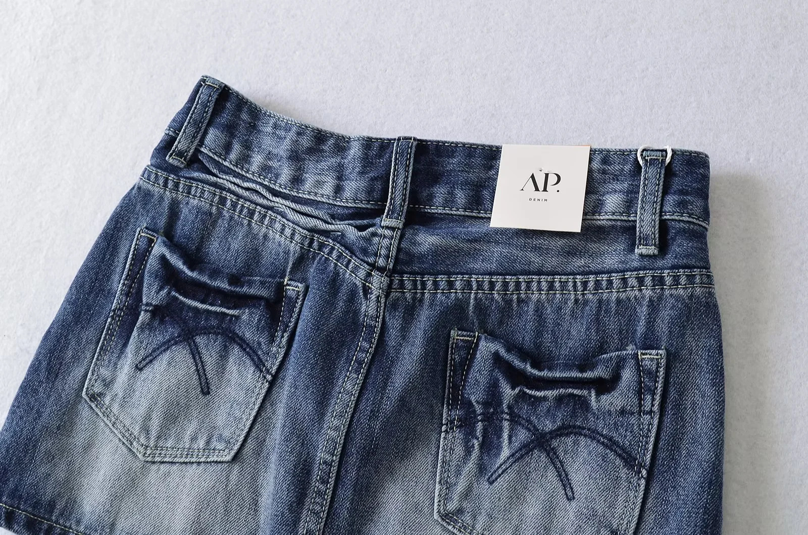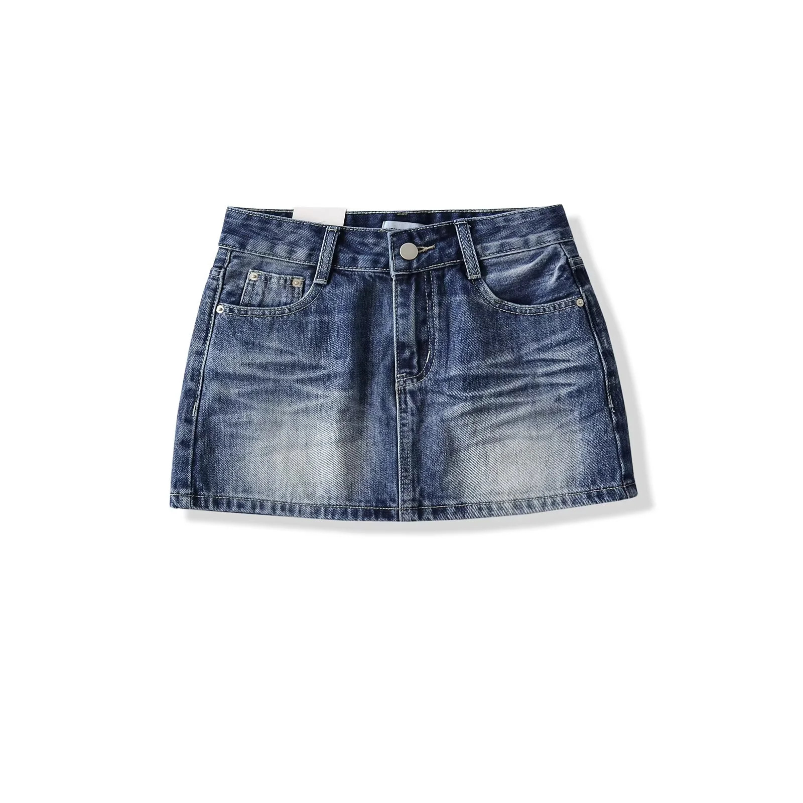 여성을위한 미국 복고풍 하이 웨이스트 데님 A 라인 스커트 여름 새로운 하이 웨이스트 핫 소녀 올드 힙 커버 미니 스커트스토어 가기