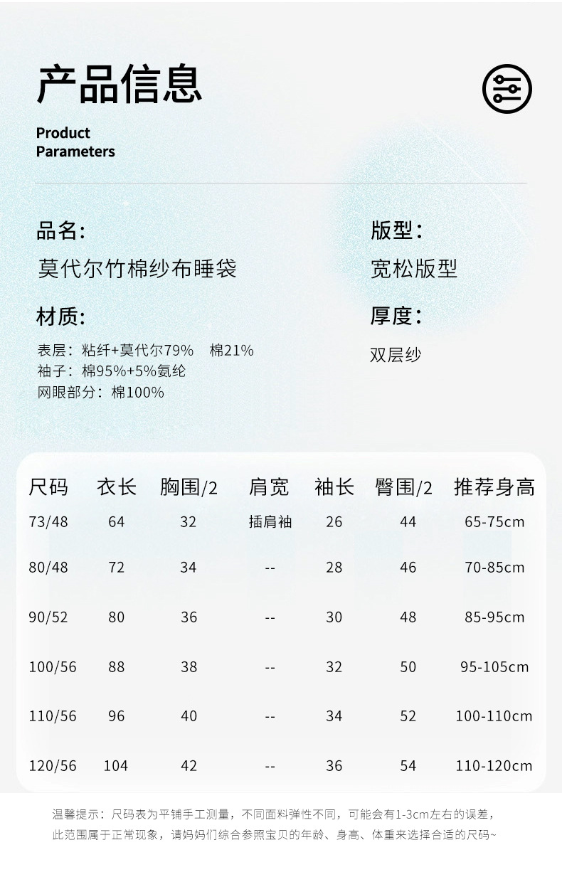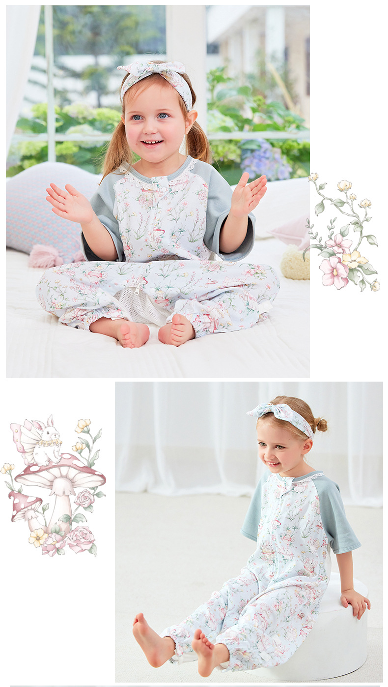 • 대나무 면 모달 반팔 메쉬 침낭 토끼 정원