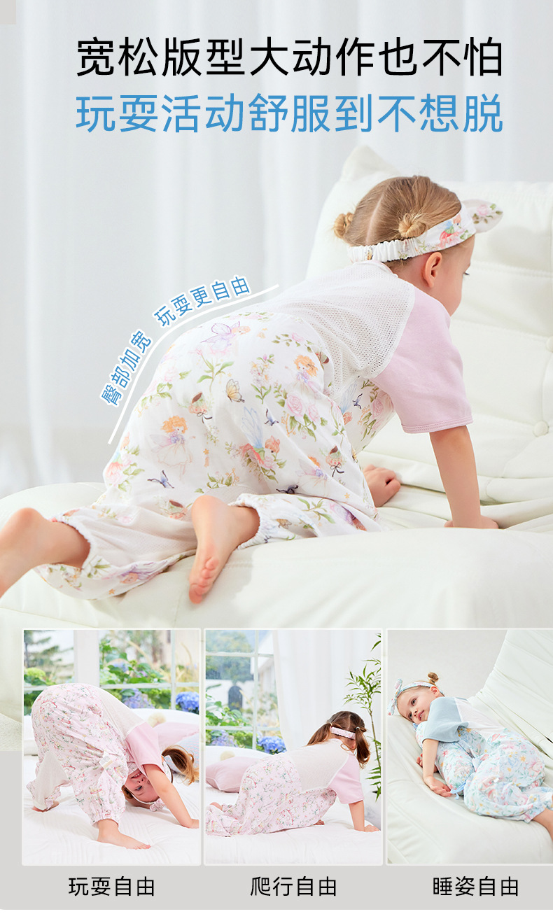 어린이 분할 다리 슬리핑 백 대나무 면 모달 아기 킥 방지 거즈 베이비 파자마 클래스 A 점보 항균 여성