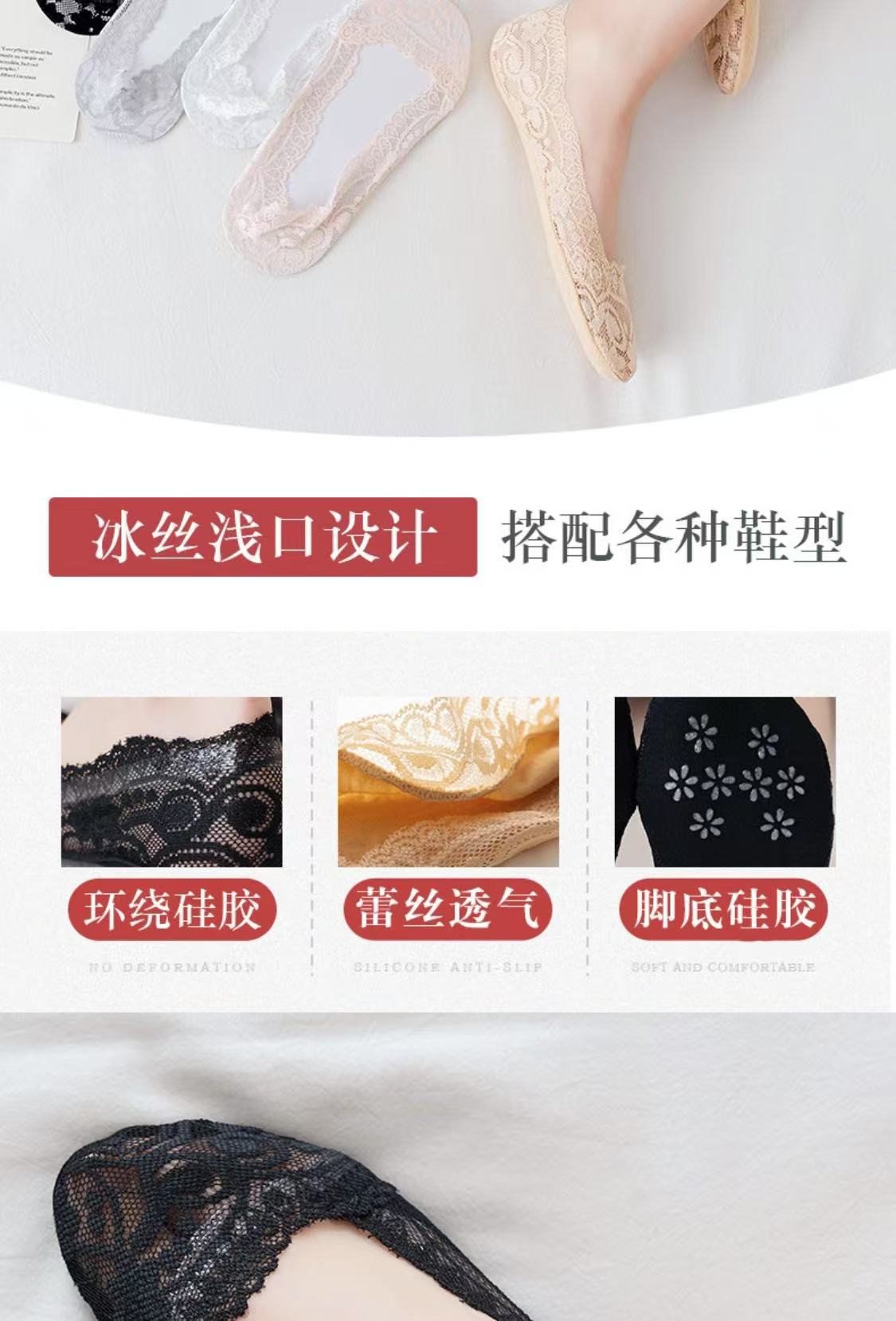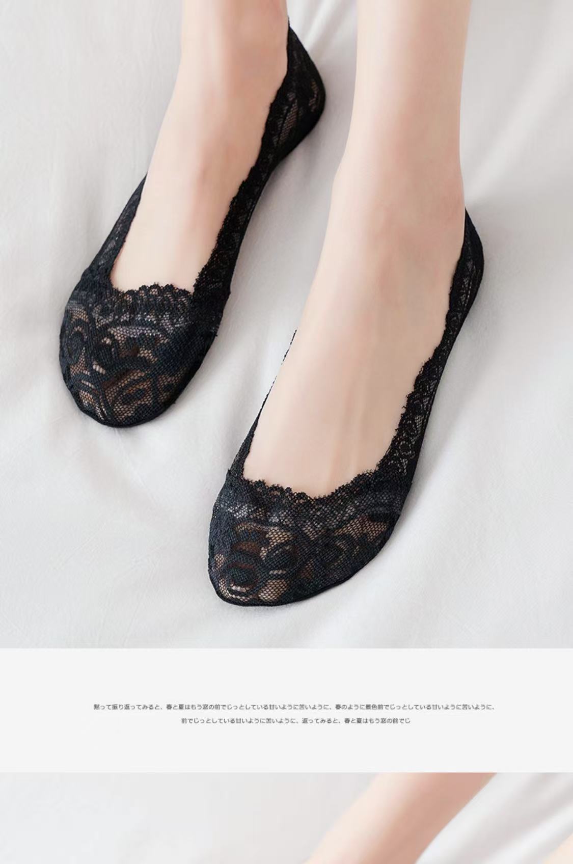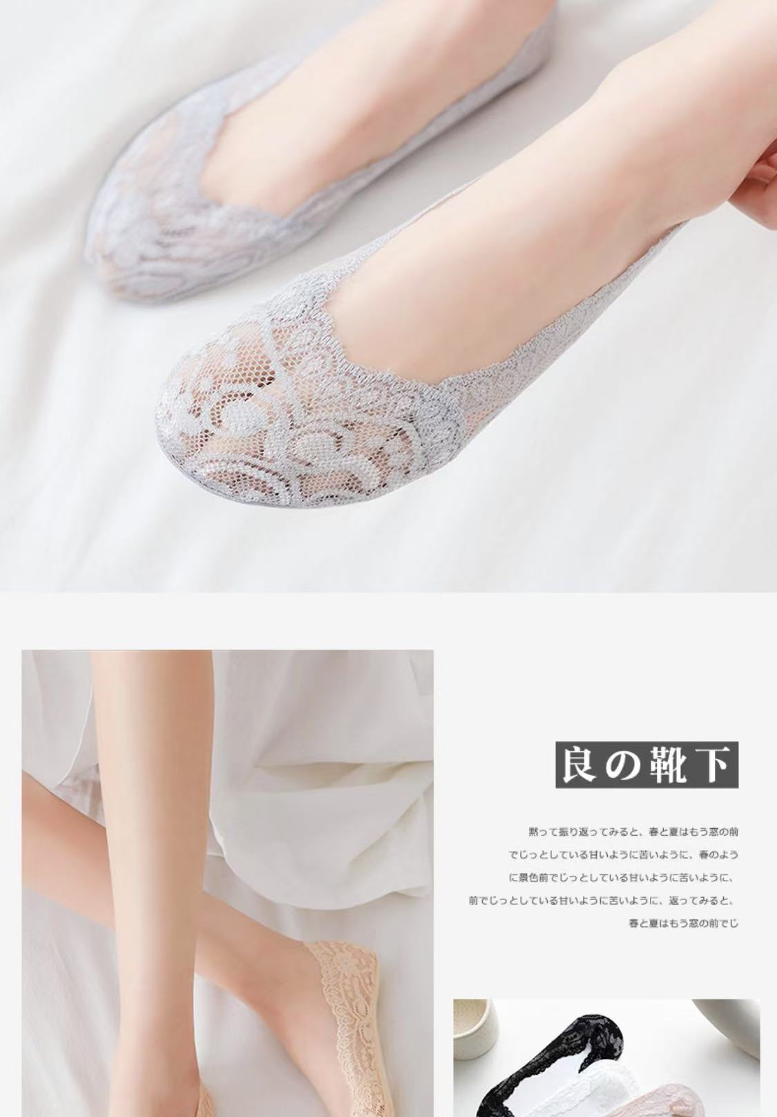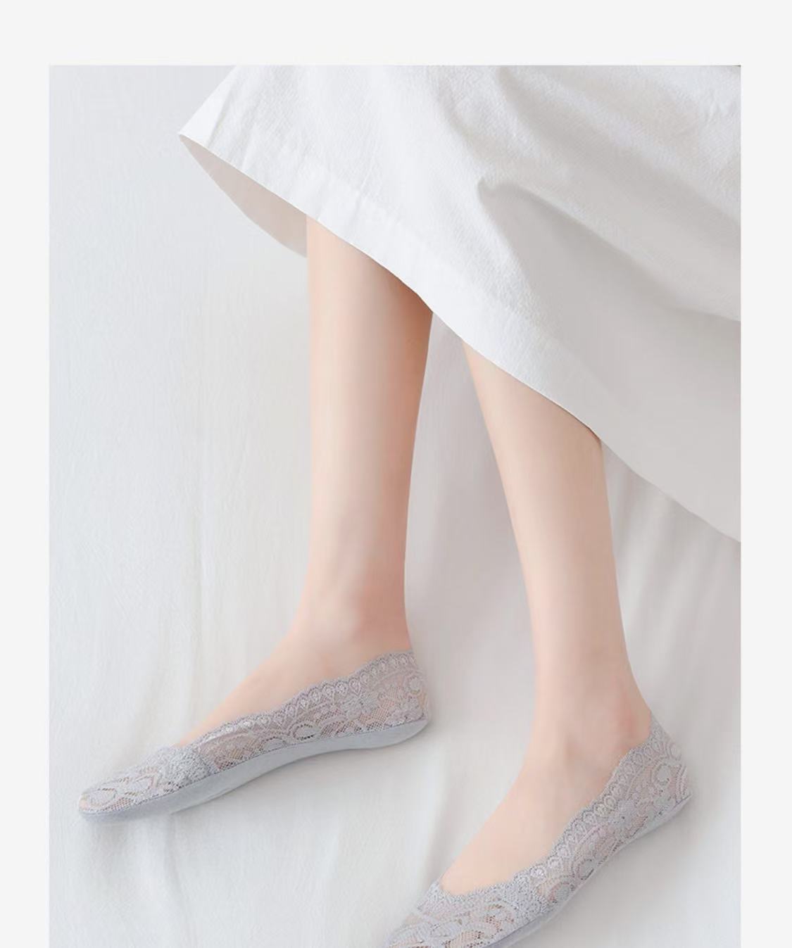 Lan Feng Ling 보트 양말 여성용 레이스 얕은 입 실리콘 미끄럼 방지 한국 스타일 봄, 여름, 가을을위한 얇은 보이지 않는 양말