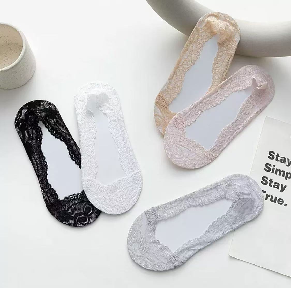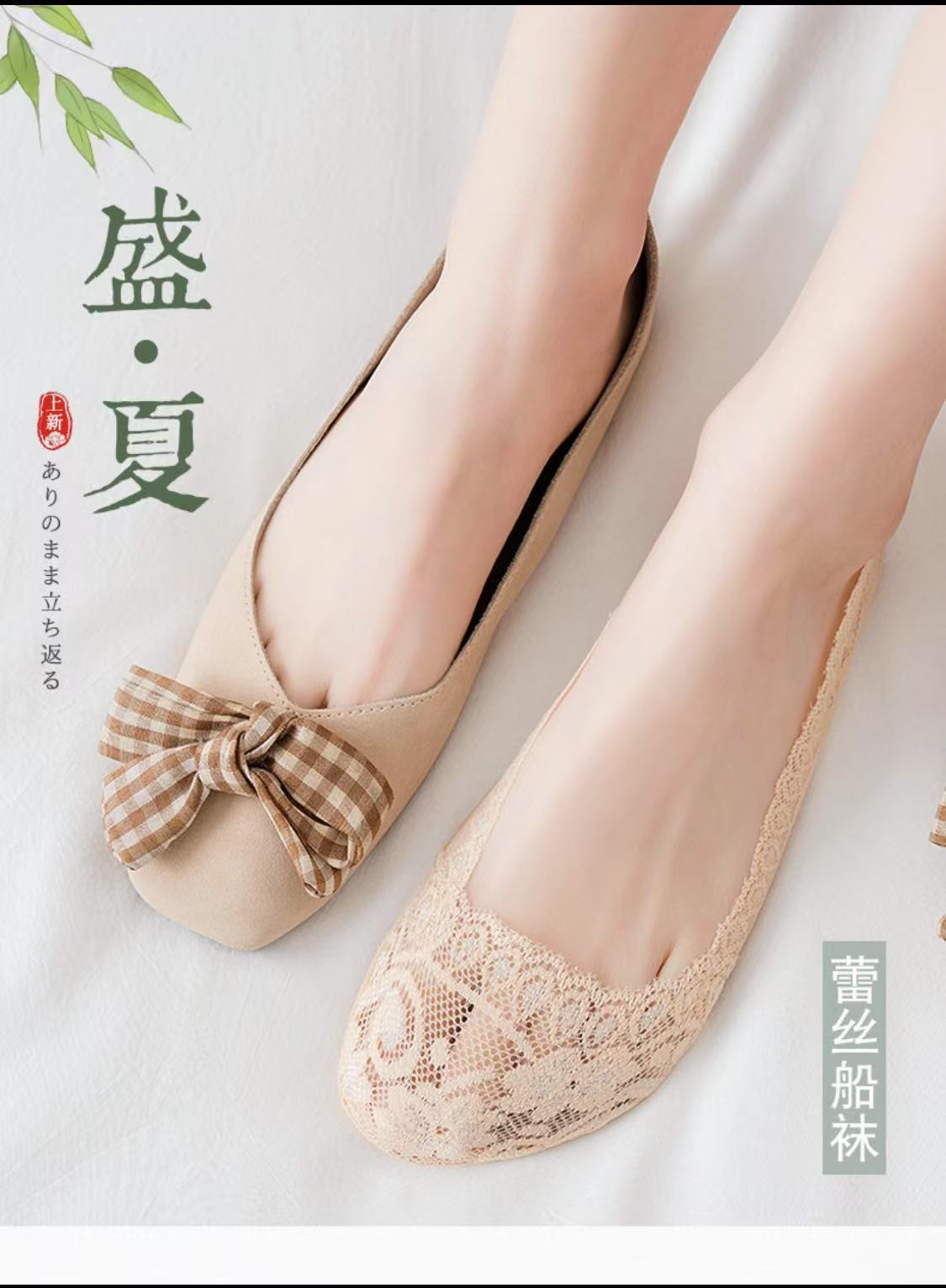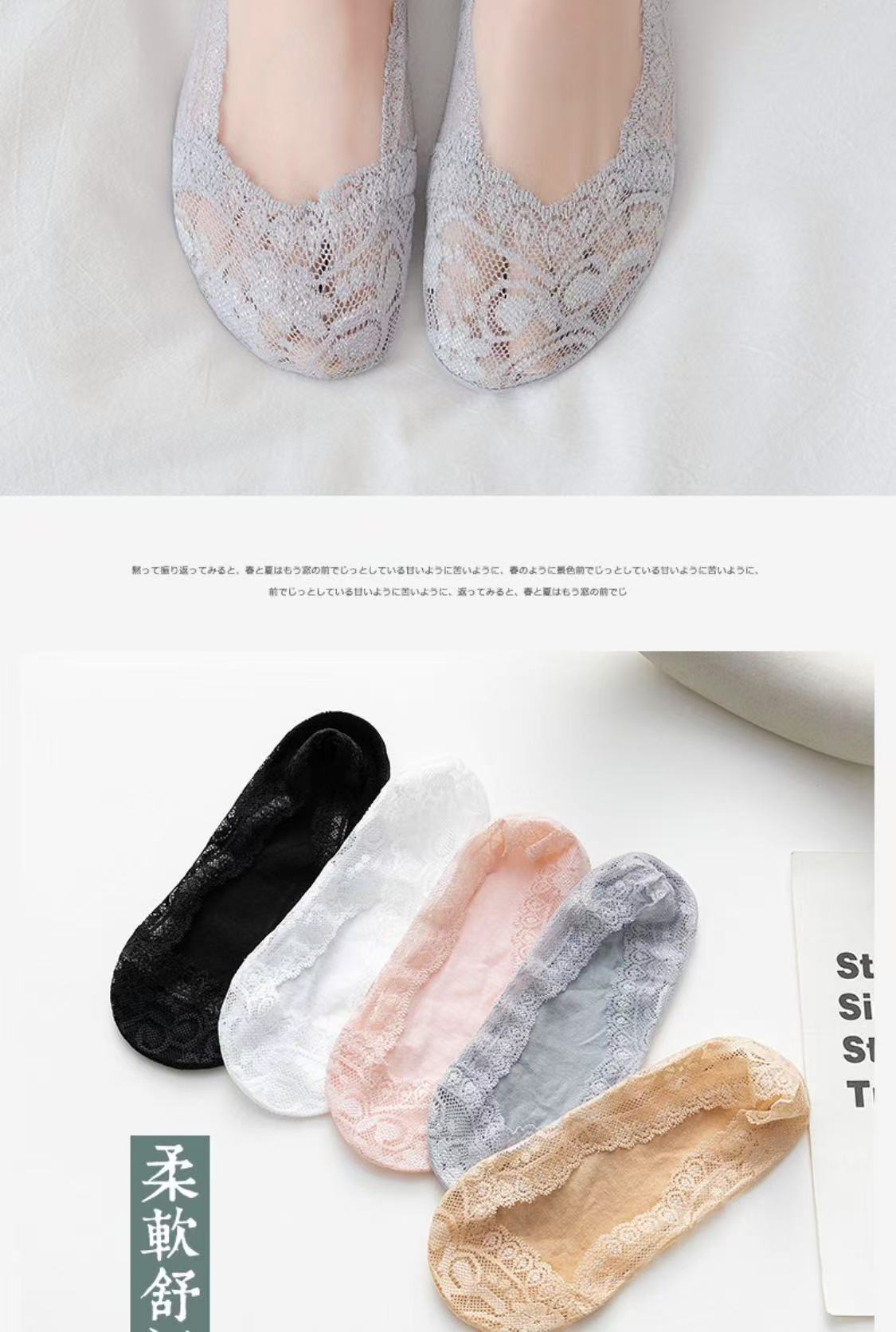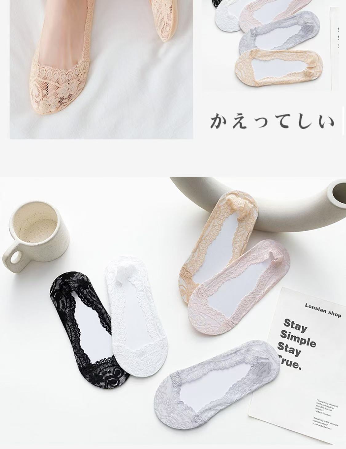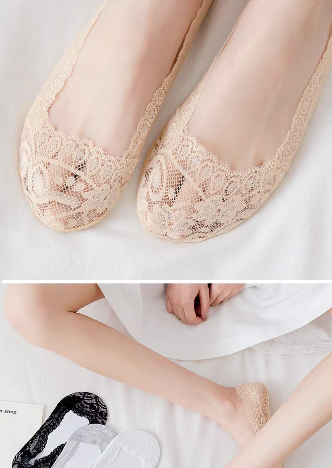 Lan Feng Ling 보트 양말 여성용 레이스 얕은 입 실리콘 미끄럼 방지 한국 스타일 봄, 여름, 가을을위한 얇은 보이지 않는 양말