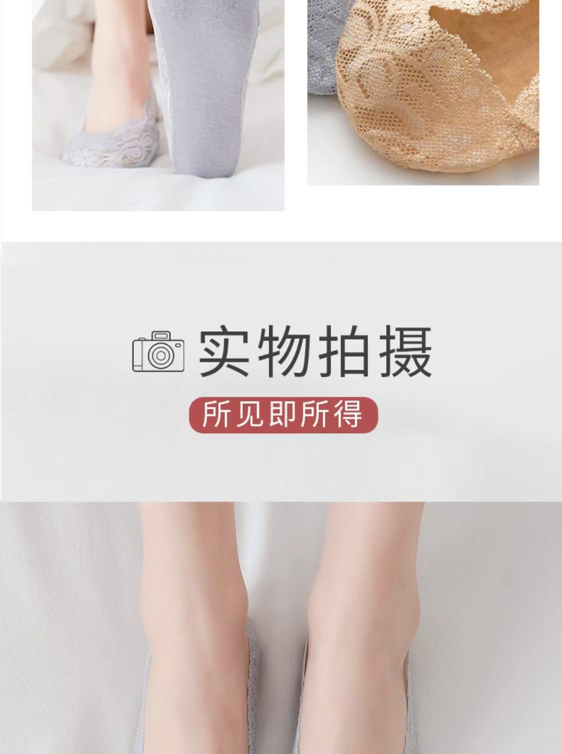 Lan Feng Ling 보트 양말 여성용 레이스 얕은 입 실리콘 미끄럼 방지 한국 스타일 봄, 여름, 가을을위한 얇은 보이지 않는 양말스토어 가기