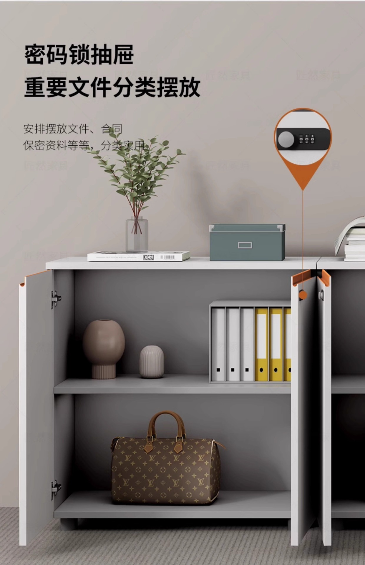 비밀번호 잠금 장치가 있는 손잡이가 없는 목재 파일 캐비닛 사무실 사무실 파일 캐비닛 보관 바닥 캐비닛스토어 가기