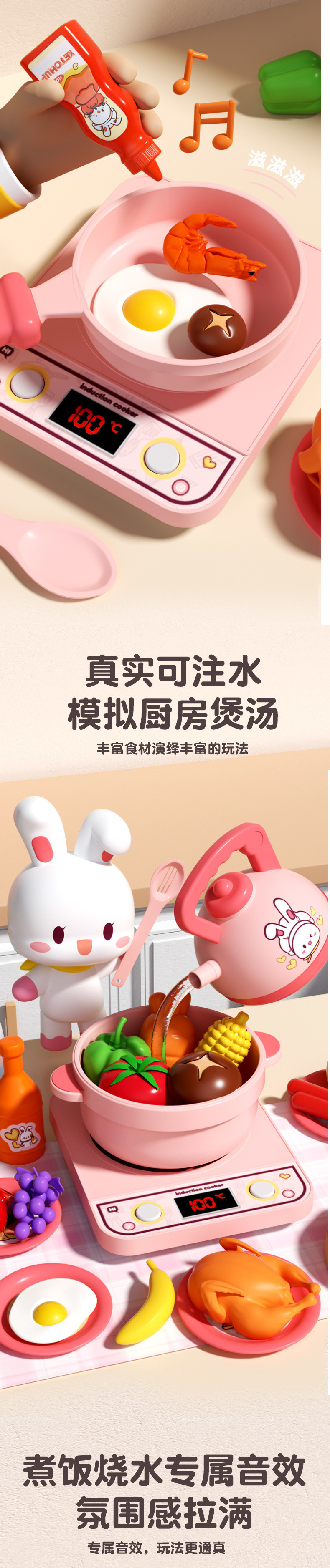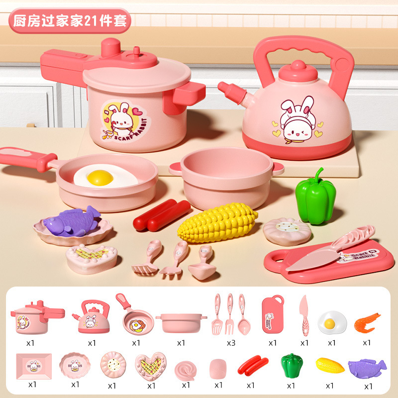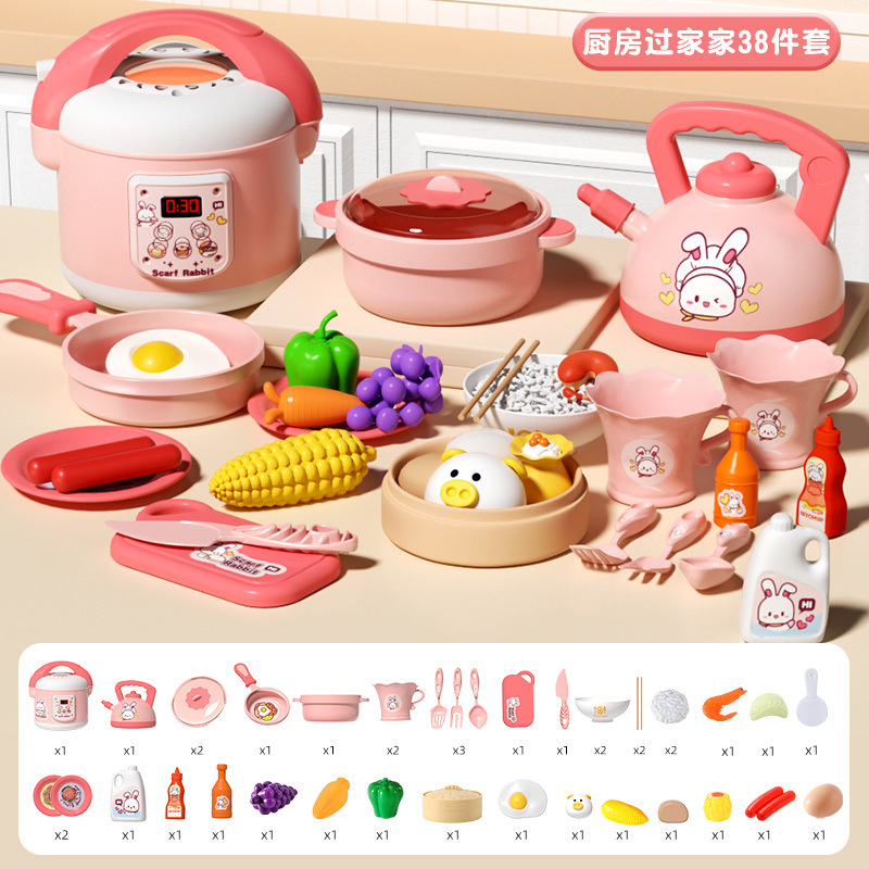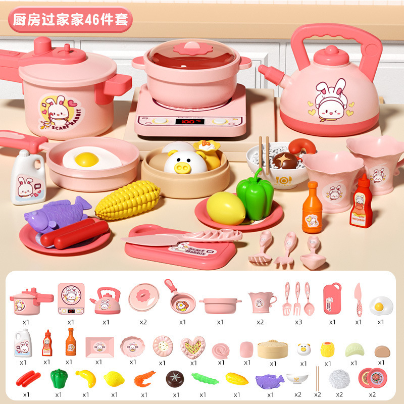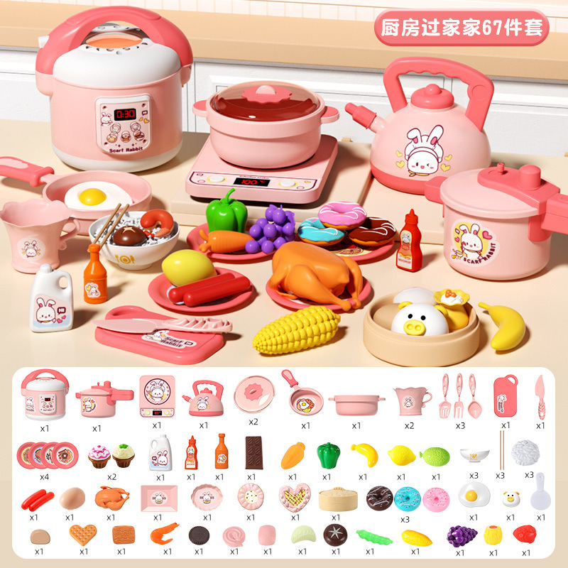작은 토끼 주방 장난감 세트 놀이 집 시뮬레이션 요리 주방 용품 인덕션 밥솥 소녀 어린이 날 선물