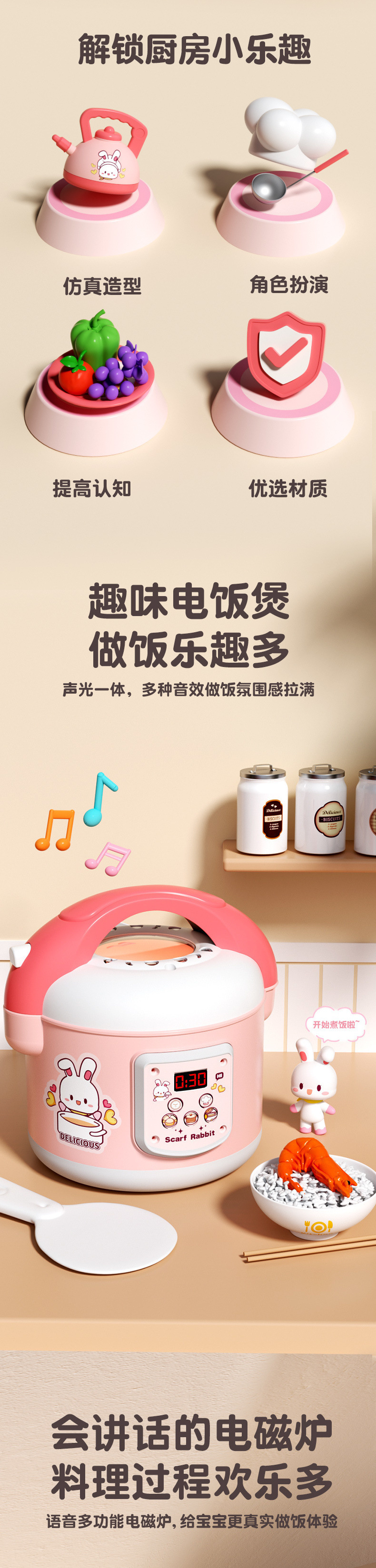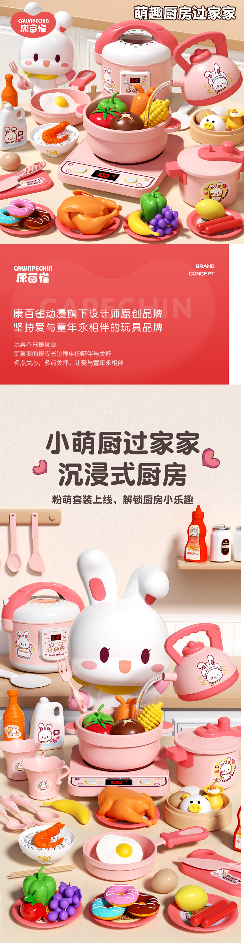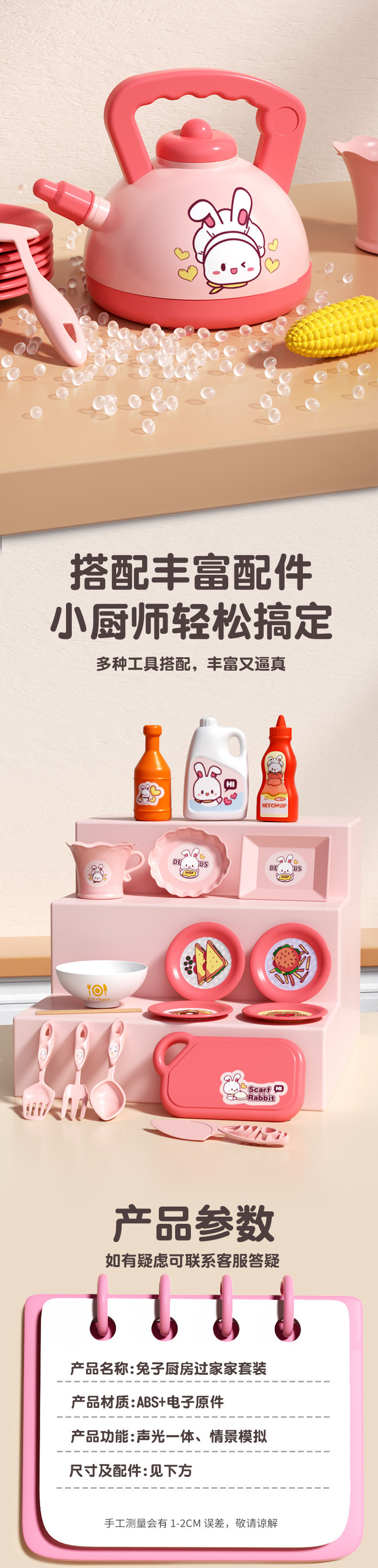 작은 토끼 주방 장난감 세트 놀이 집 시뮬레이션 요리 주방 용품 인덕션 밥솥 소녀 어린이 날 선물