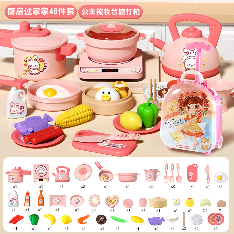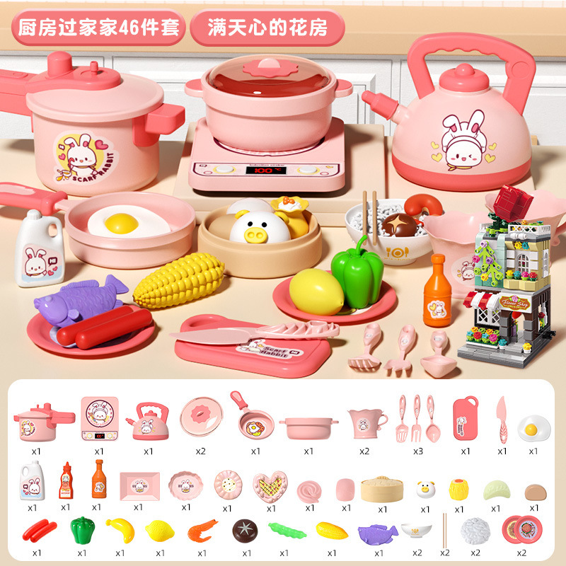 작은 토끼 주방 장난감 세트 놀이 집 시뮬레이션 요리 주방 용품 인덕션 밥솥 소녀 어린이 날 선물스토어 가기