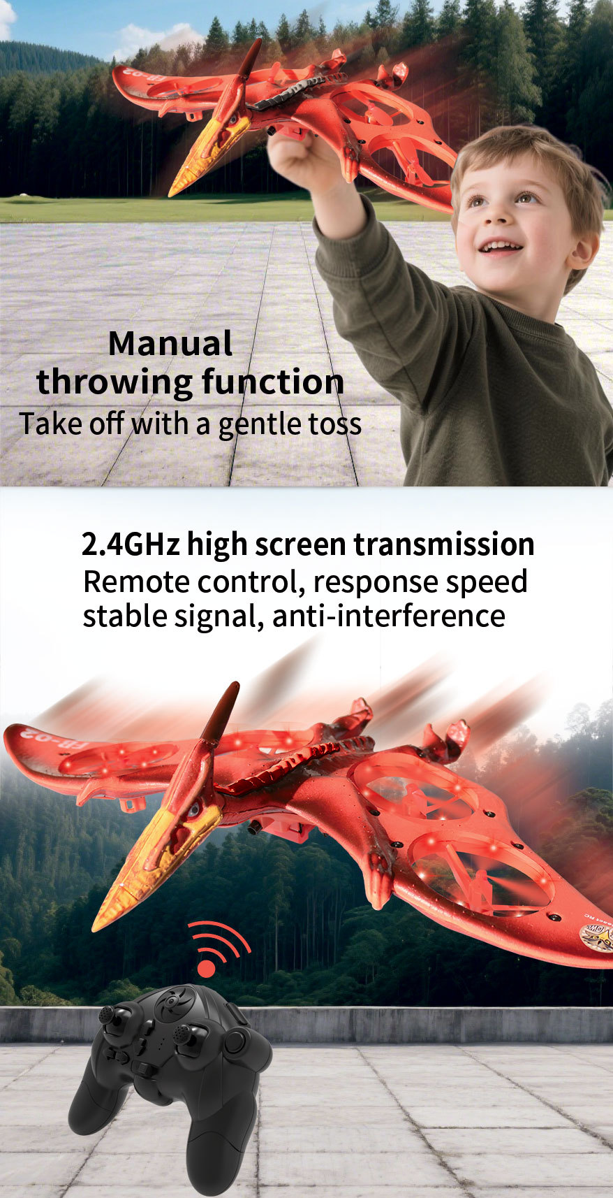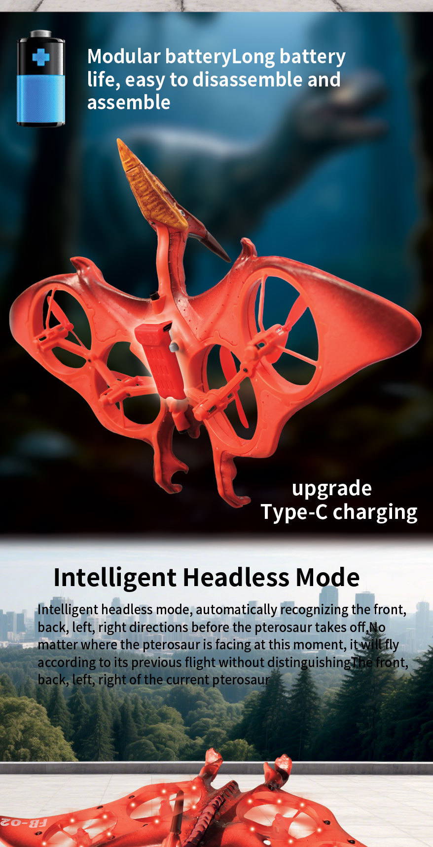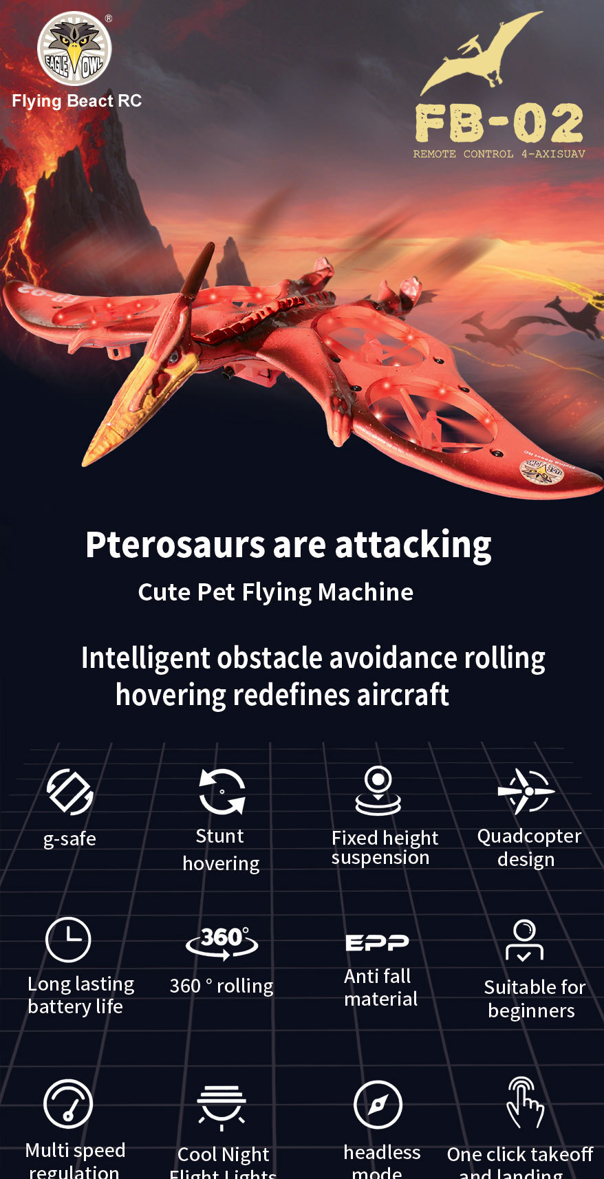 국경 간 원격 제어 항공기 익룡 전투기 시뮬레이션 공룡 멋진 조명 쿼드 콥터 모델 항공기 대외 무역 장난감스토어 가기