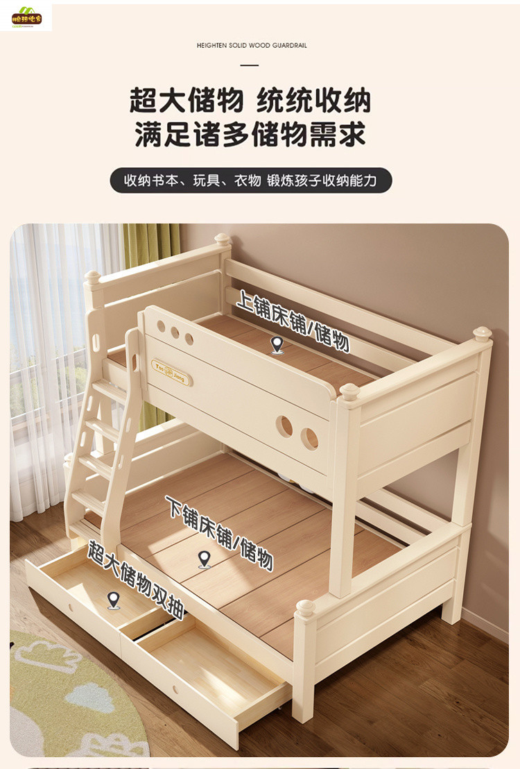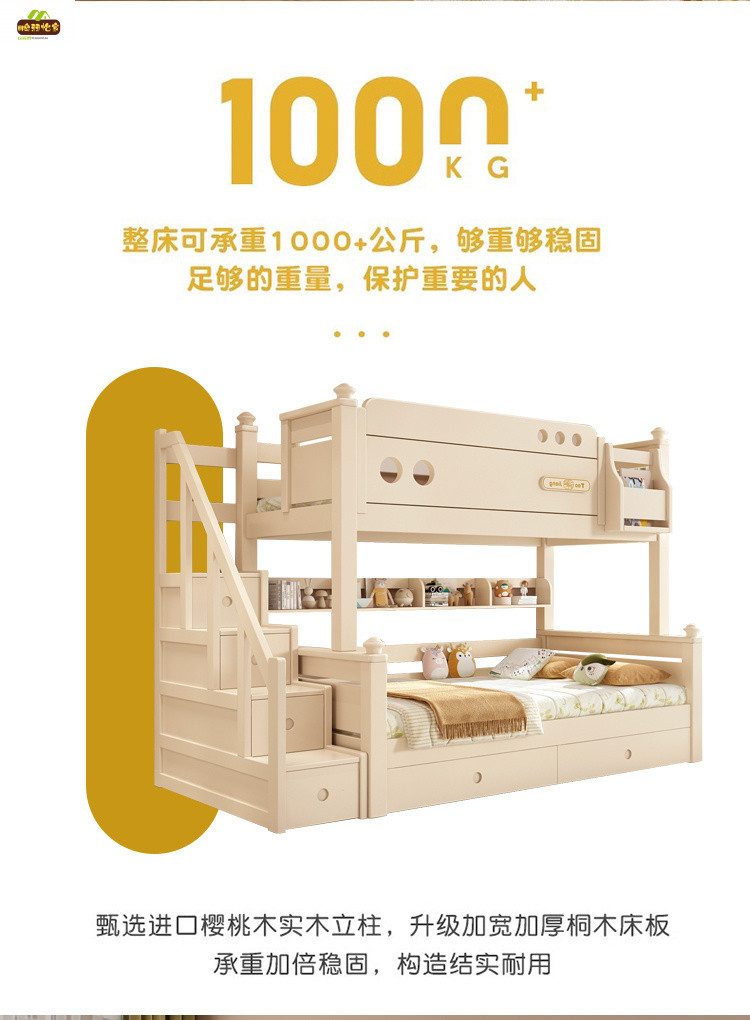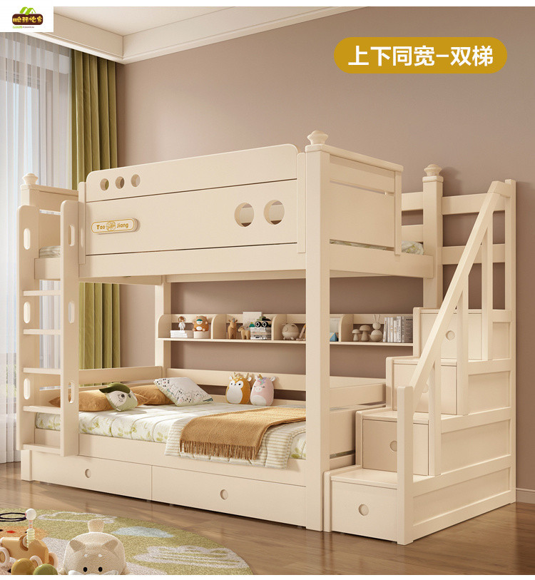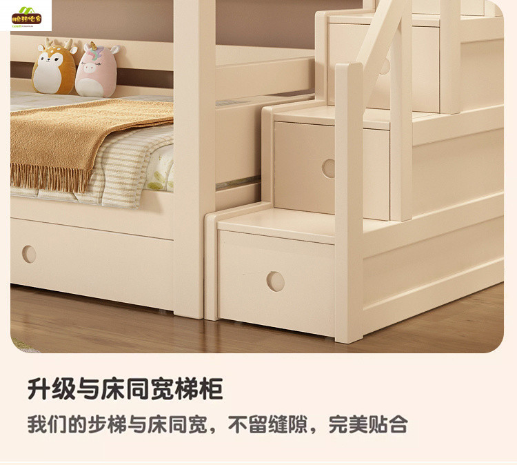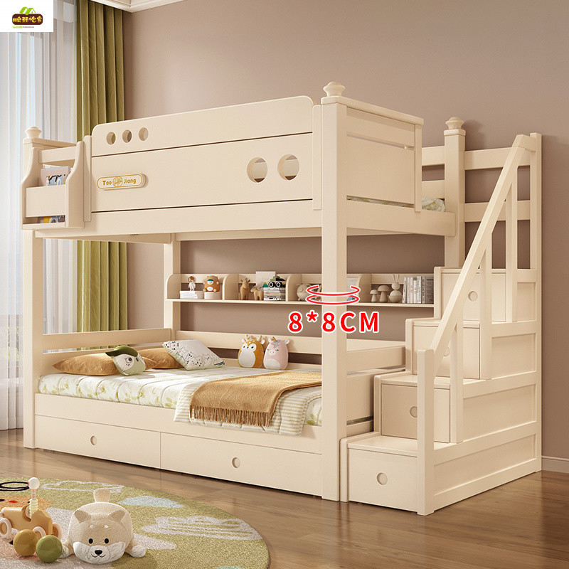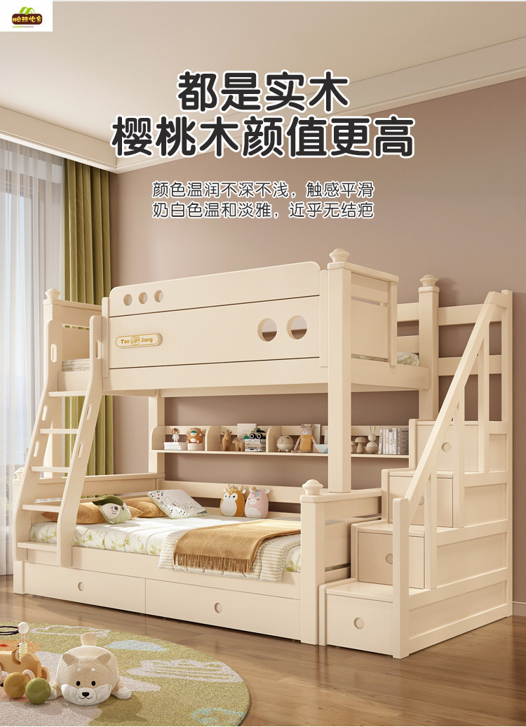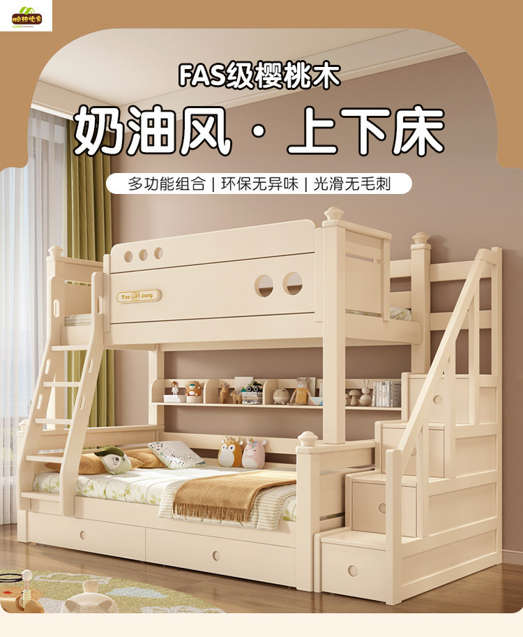크림 스타일 단단한 나무 다기능 소형 이층 침대 체리 나무 어린이 침대 높낮이 이층 침대스토어 가기