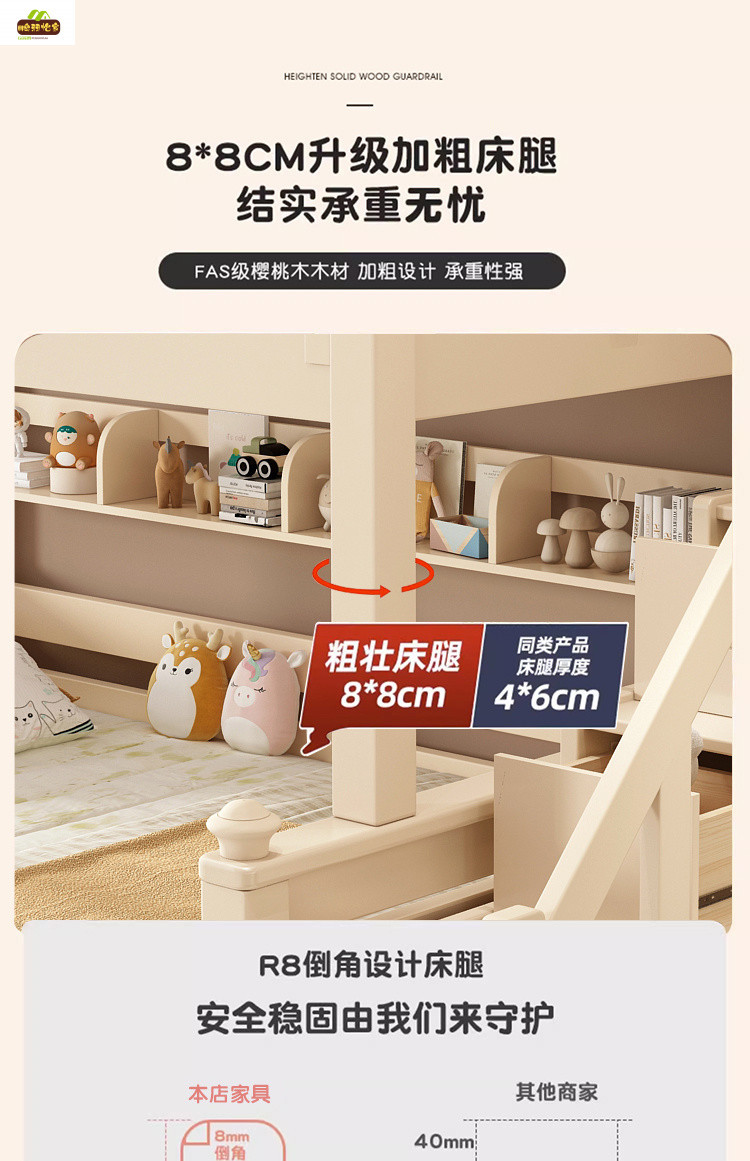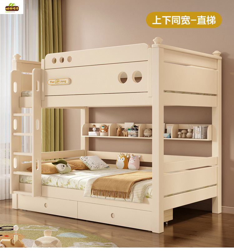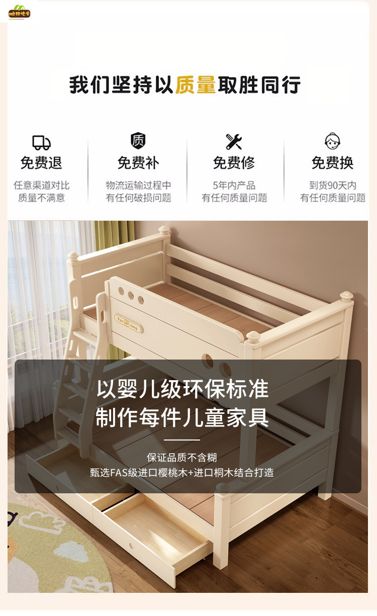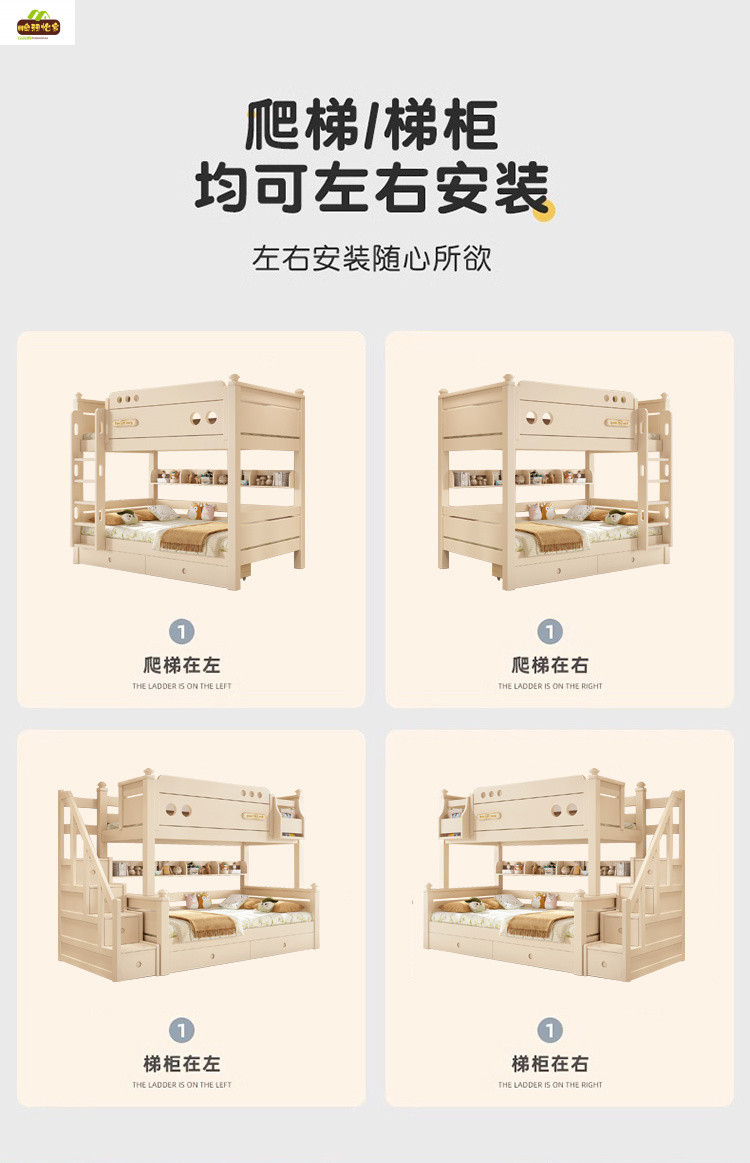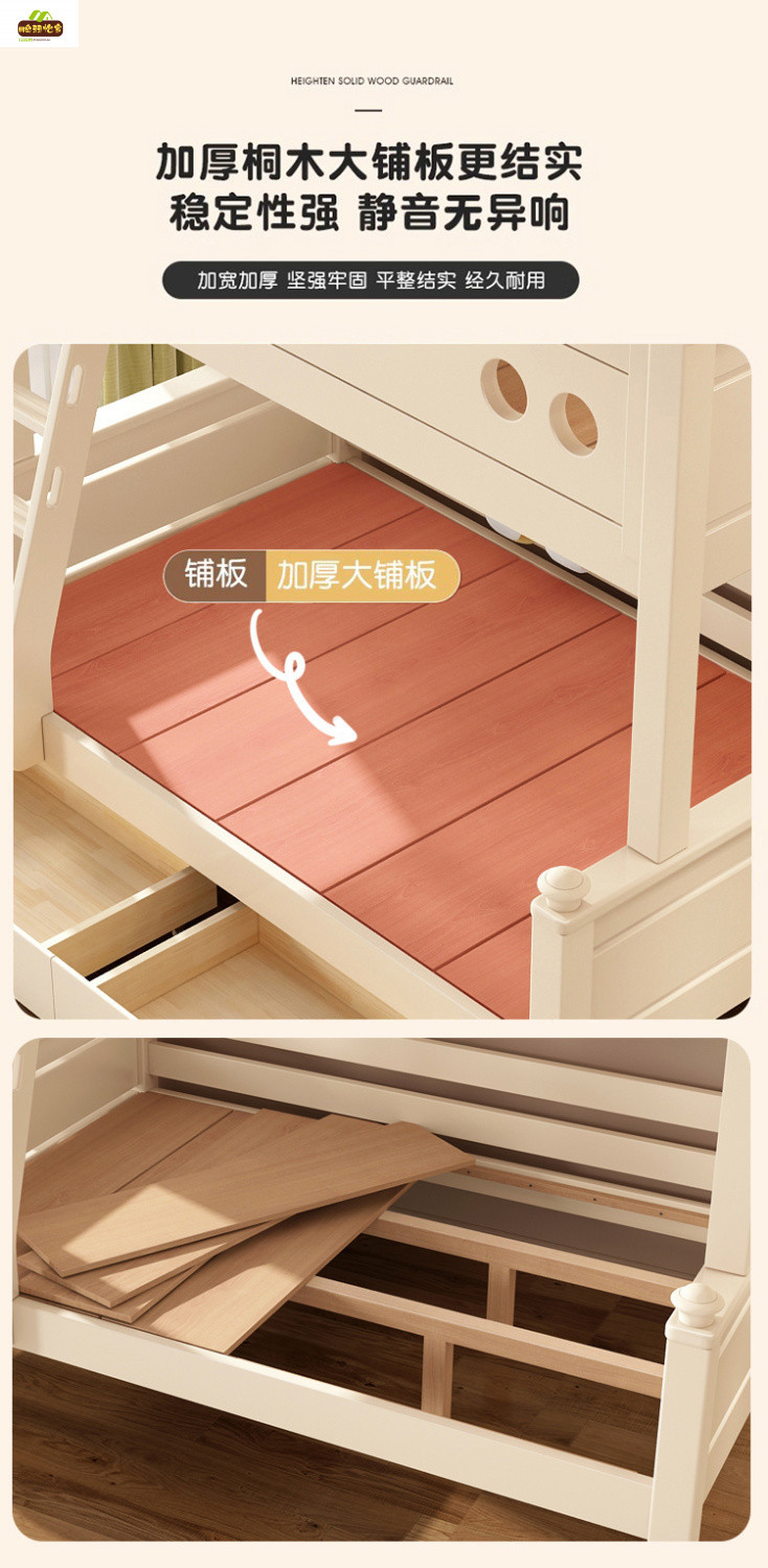 크림 스타일 단단한 나무 다기능 소형 이층 침대 체리 나무 어린이 침대 높낮이 이층 침대스토어 가기