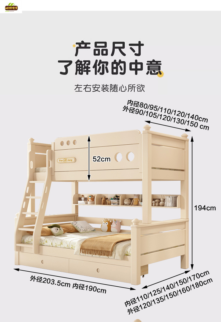 • 이중 사다리 모델은 상단 너비 90cm, 하단 너비 120cm입니다. [5cm 매트리스와 일치]