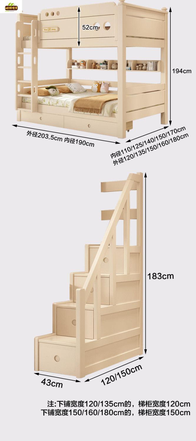 • 이중 사다리 모델은 상단 너비 120cm, 하단 너비 150cm입니다. [5cm 매트리스와 일치]