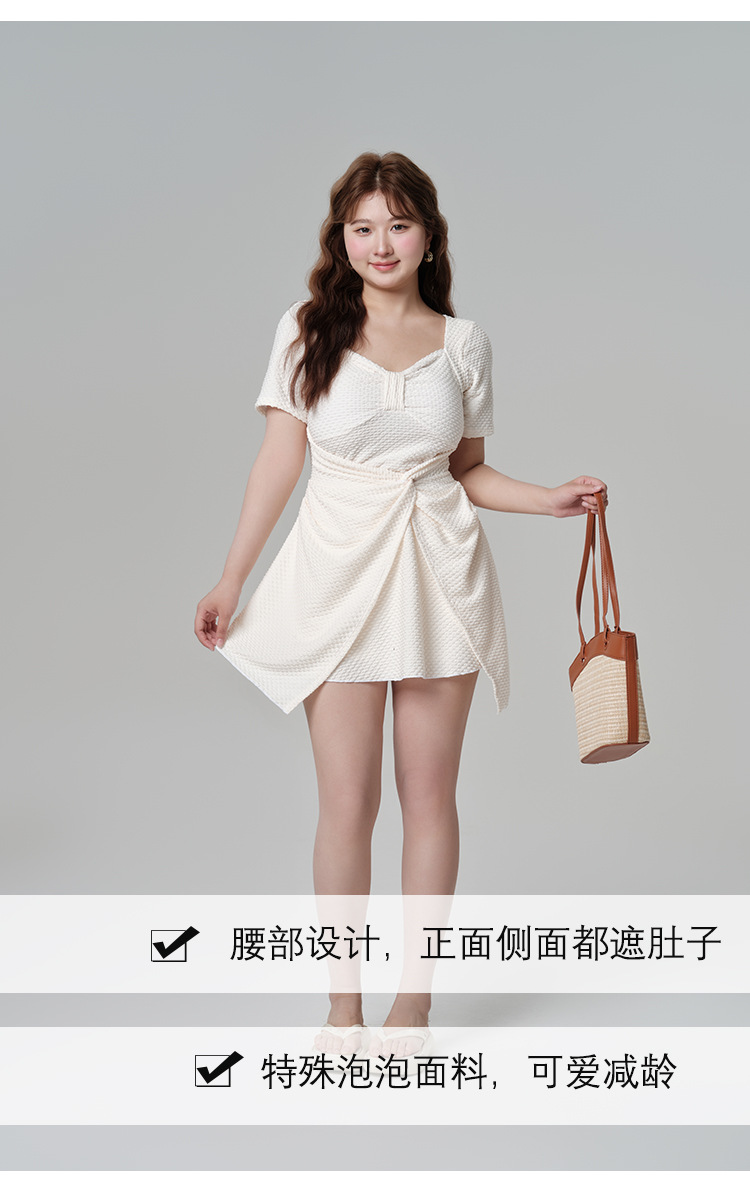 뚱뚱한 여성을 위한 플러스 사이즈 수영복 mm 100kg 슬리밍 및 살 커버, 와이어 없음, 큰 가슴 스플릿 스커트 스타일, 고급 휴가 수영복