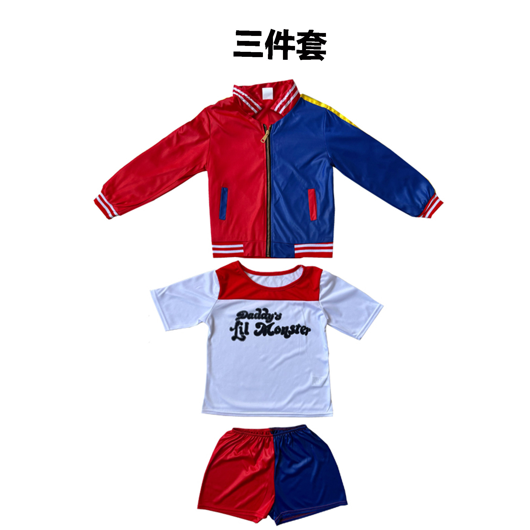 服装材质是涤纶布印花,可以清洗,弹性大,不会掉色