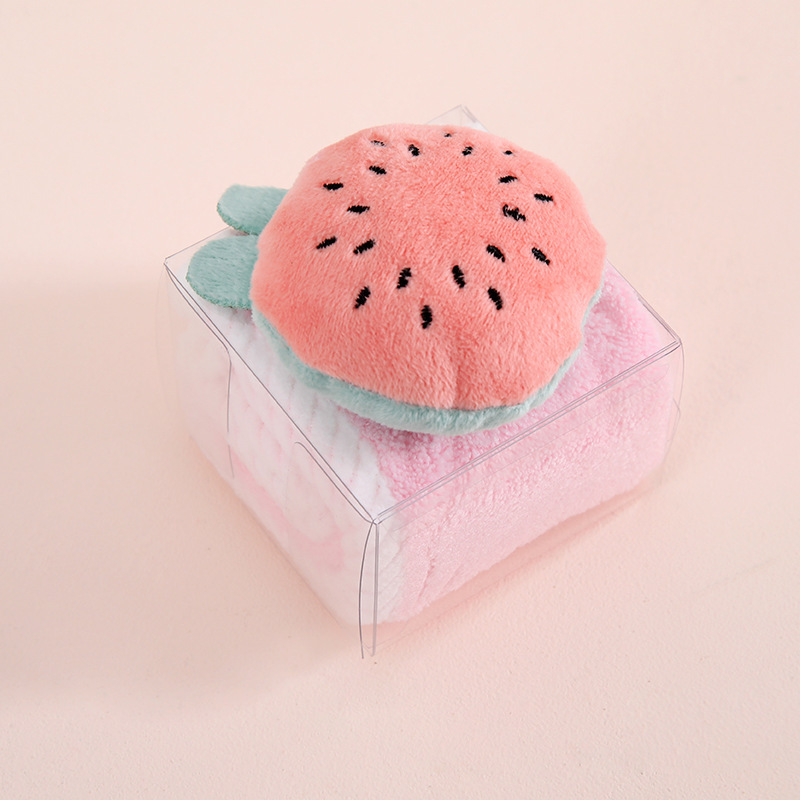 케이크 상자 만화 수건, 두껍고 보푸라기가 없으며 흡수성, 걸이형 선물 핸드 타월, 귀여운 스타일