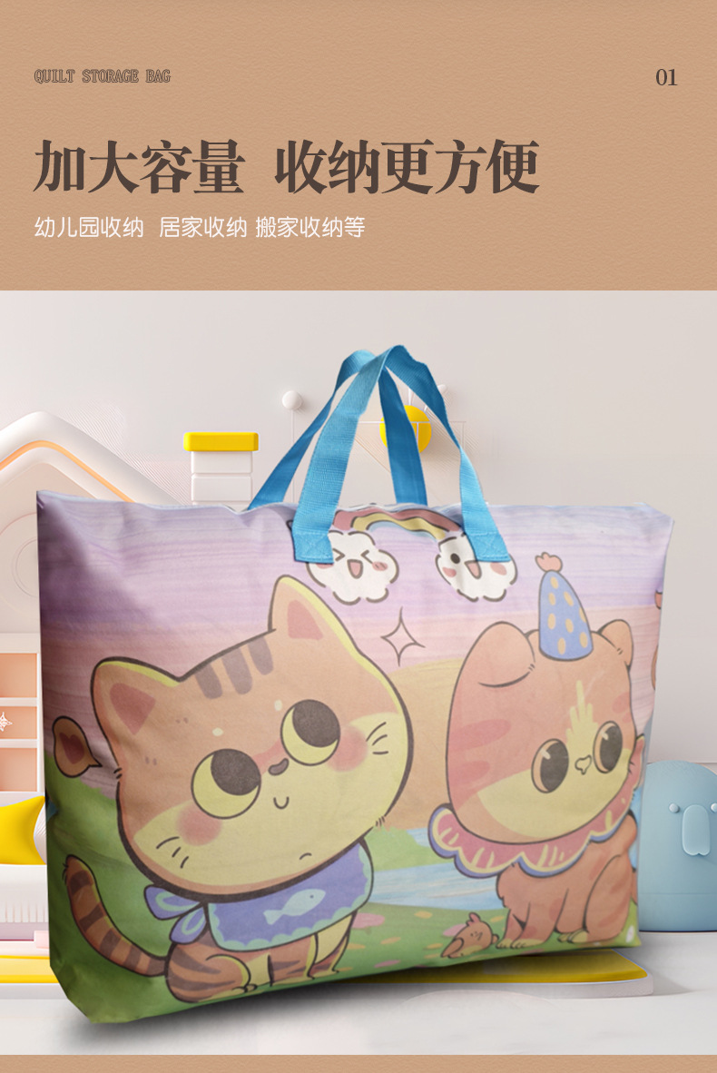유치원 만화 퀼트 저장 가방 부직포 이불 이동 가방 어린이 대용량 적합 가방